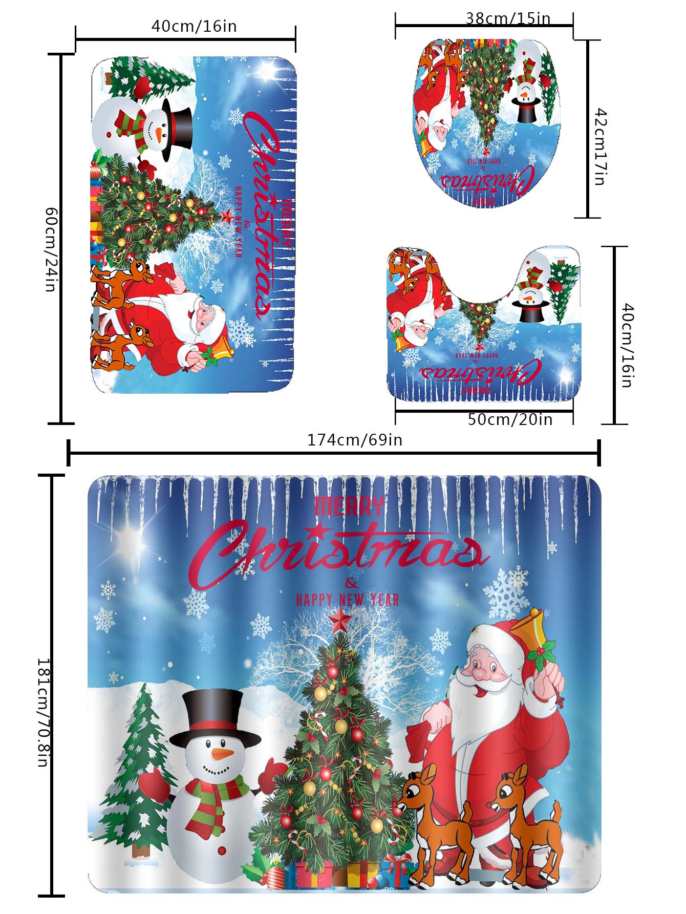 4pc Christmas Santa Claus Print Bath Rug And Shower Curtain ist auf Lager und wird versandt, sobald es wieder verfügbar ist