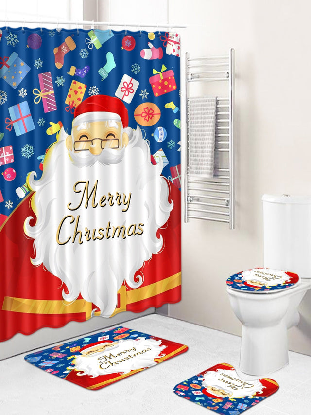 4pc Christmas Santa Pattern Shower Curtain And Bath Rug