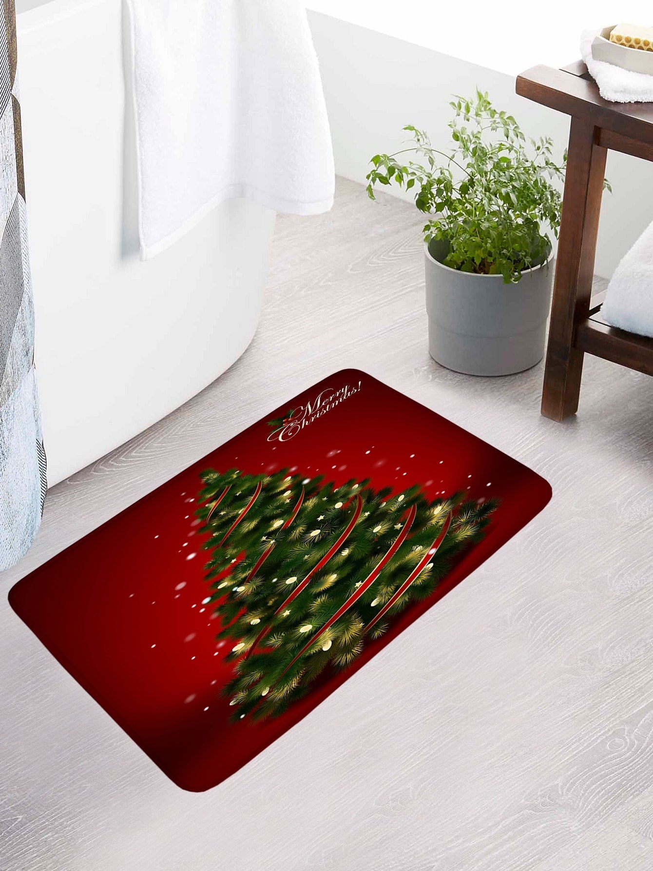 4pc Christmas Tree Pattern Shower Curtain And Bath Rug