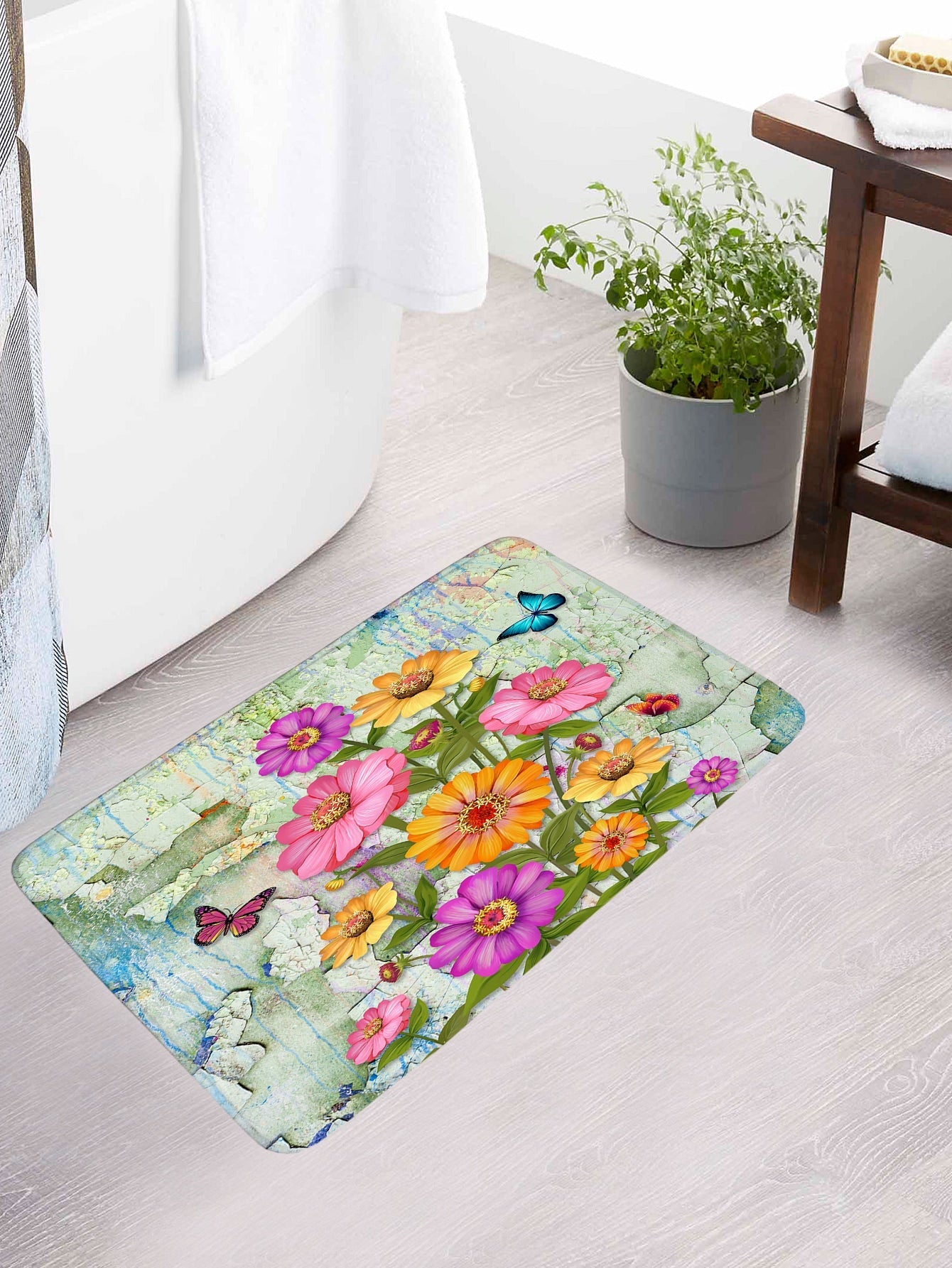 4pc Floral Pattern Bath Rug And Shower Curtain ist auf Lager und wird versandt, sobald es wieder verfügbar ist