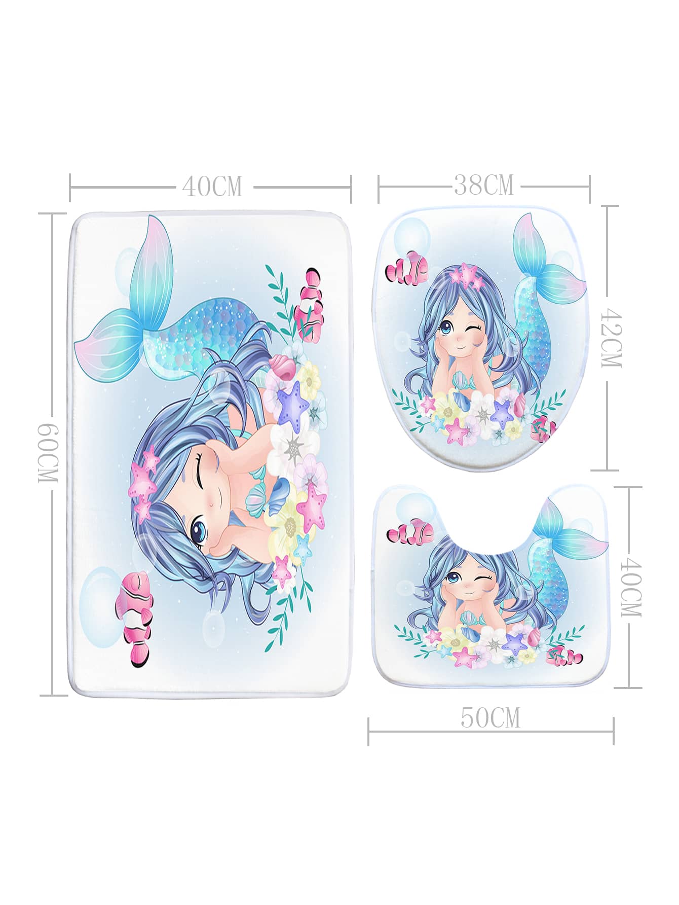 4pc Mermaid Print Bath Mat AndShower Curtain