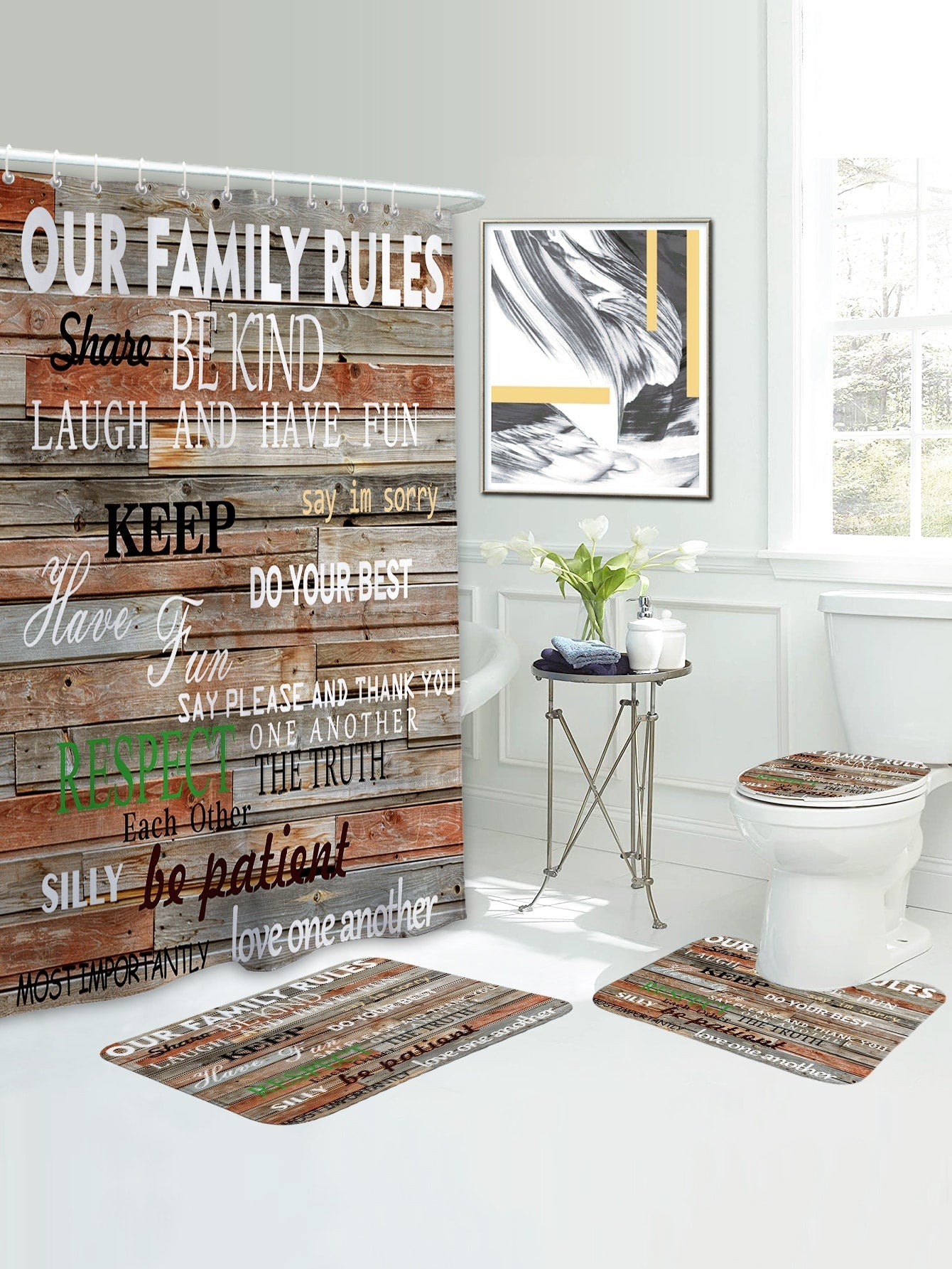 4pc Slogan Graphic Bath Rug And Shower Curtain
