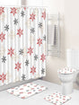 4pc Snowflake Pattern Bath Rug And Shower Curtain