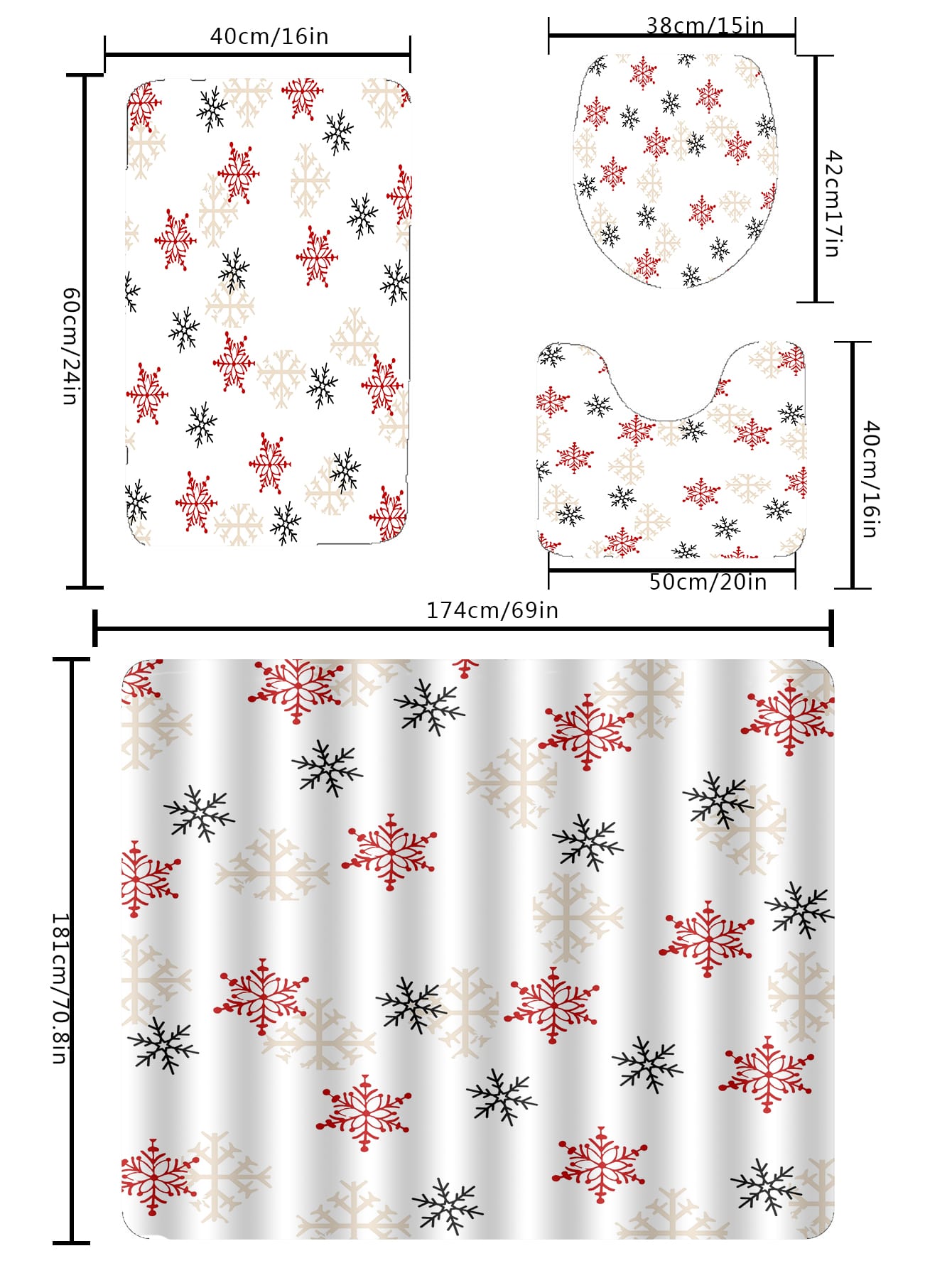 4pc Snowflake Pattern Bath Rug And Shower Curtain ist auf Lager und wird versandt, sobald es wieder verfügbar ist