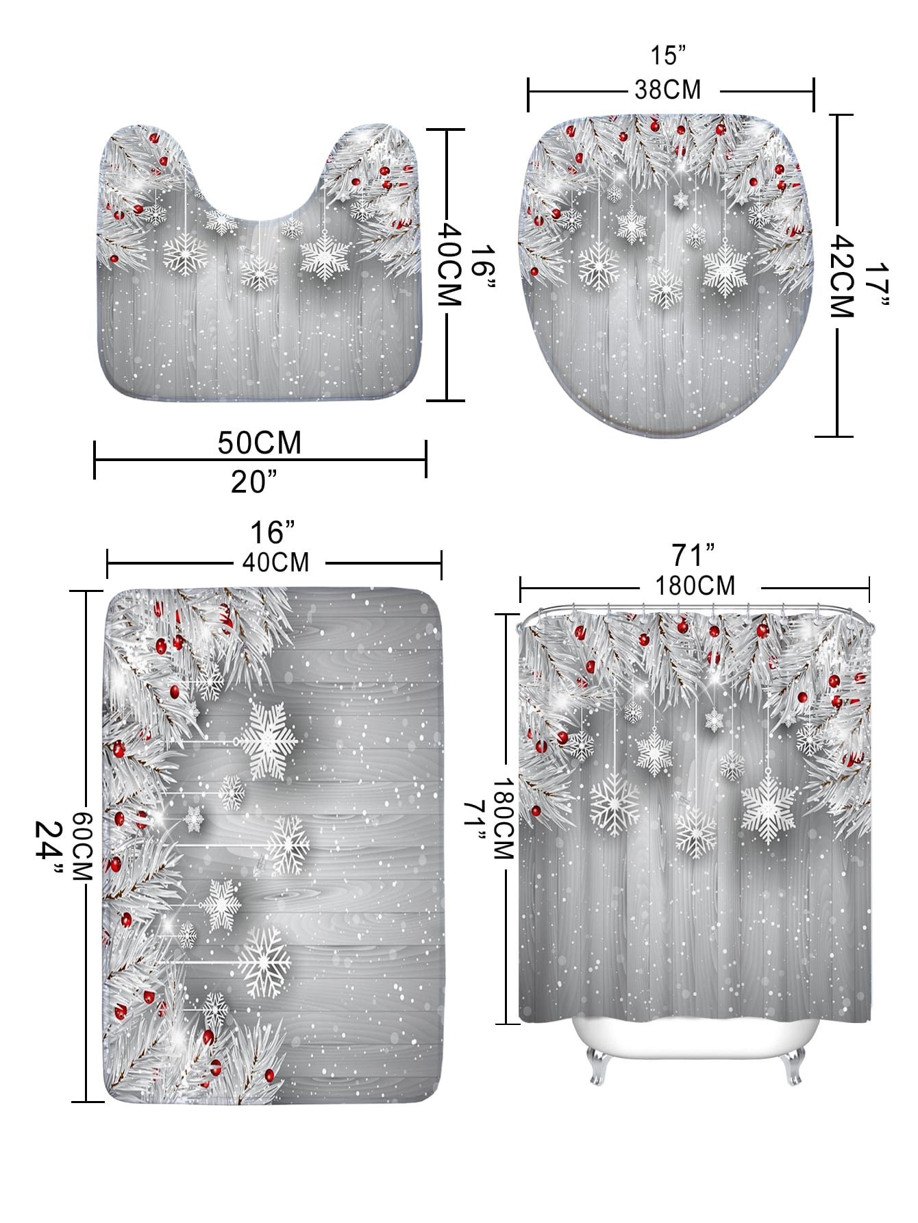 4pc Snowflake Print Bath Rug And Shower Curtain