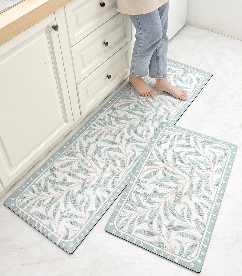 PVC Blue White Leaves Kitchen Floor Mat - 45X75 cm ist auf Lager und wird versandt, sobald es wieder verfügbar ist