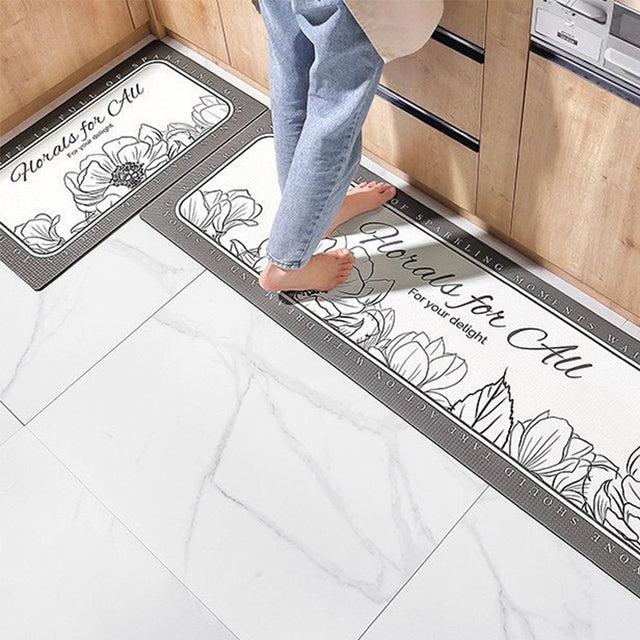 The top of the anti-fatigue mat is designed with ecological reactive dyes while the bottom is made of a non-slip material to keep the rug sturdy and prevent shifting or slipping, thus enhancing safety.