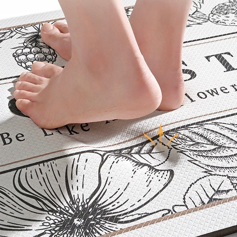 The top of the anti-fatigue mat is designed with ecological reactive dyes while the bottom is made of a non-slip material to keep the rug sturdy and prevent shifting or slipping, thus enhancing safety.