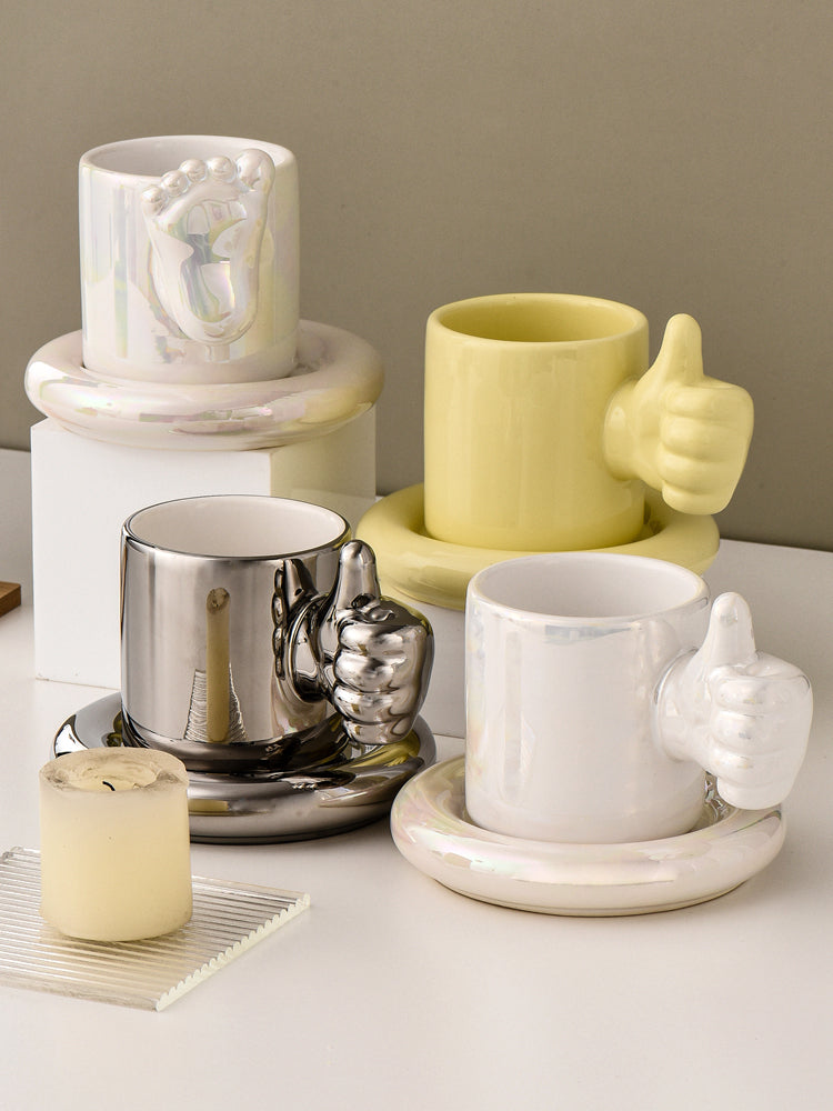 Nordic ins style creative thumb ceramic coffee cup saucer like cup personality outstanding mug