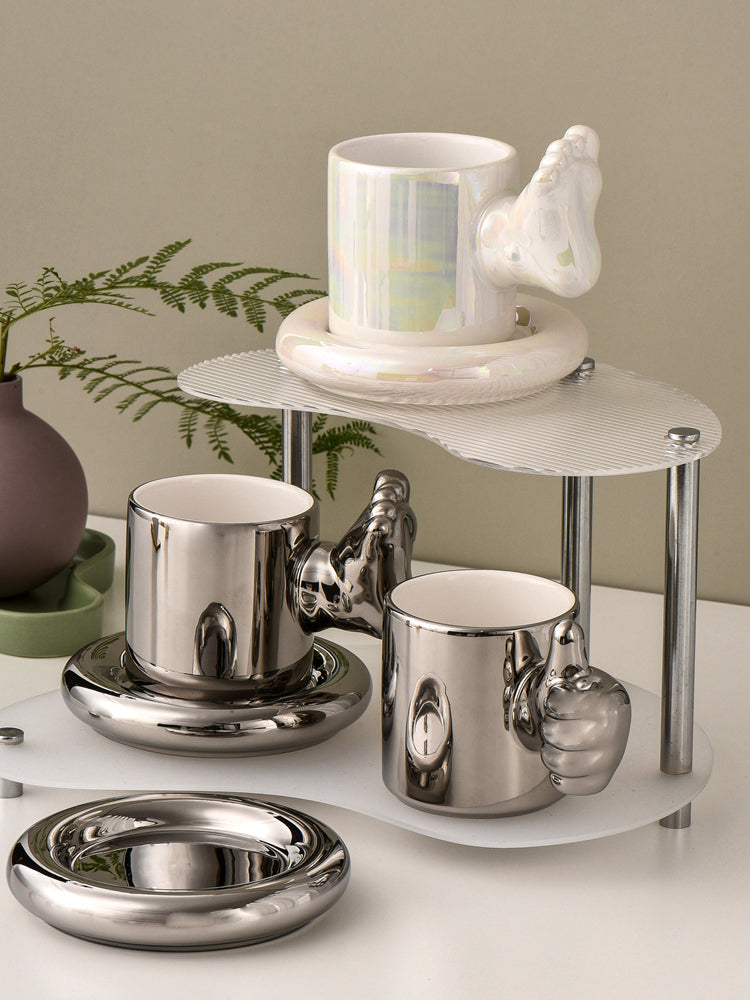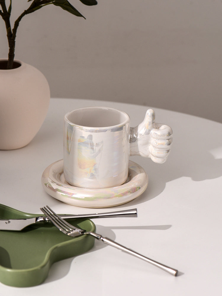 Nordic ins style creative thumb ceramic coffee cup saucer like cup personality outstanding mug - King Cup and Saucer - Pearlescent ist auf Lager und wird versandt, sobald es wieder verfügbar ist
