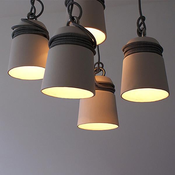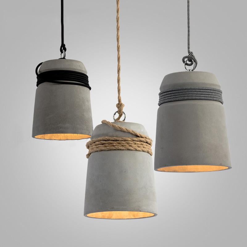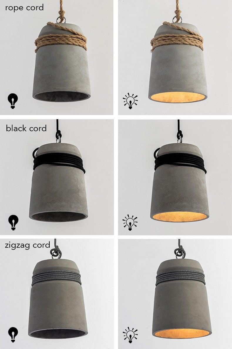Concrete Cord wrapped Monolith Minimalist Pendant Light