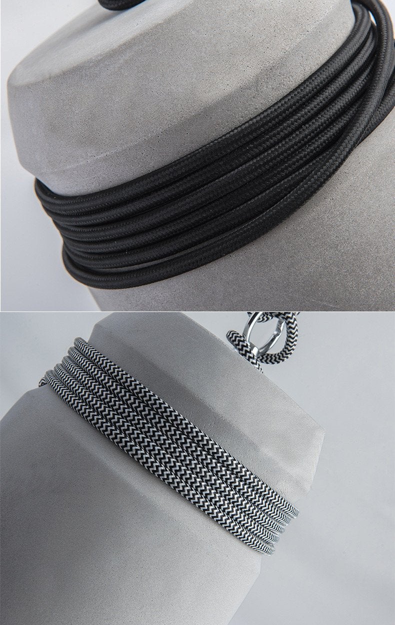 This simple and understated pendant is the perfect addition to any industrial, loft or creative space. Choose between three designs of fabric cords - rope, black or zig zag.