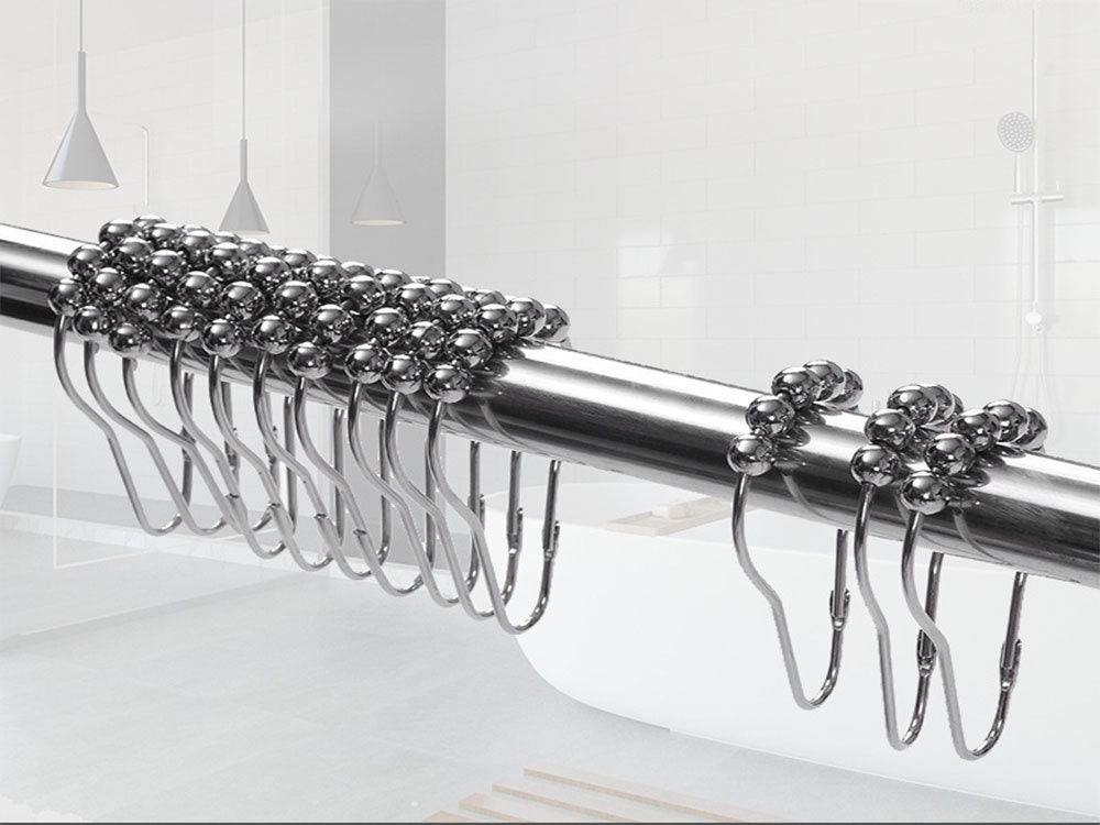 Standard shower curtain metal hooks. 12 pieces in a set.