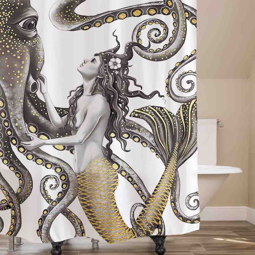 MATERIAL: Soft Elegant Polyester Fabric Nautical Bathroom CurtainMermaid Octopus PATTERN--3D digital printing, brighten your bathroom, color is gorgeous and not faded.