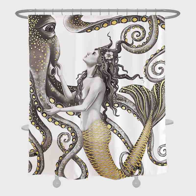 Mermaid and octopus shower curtain