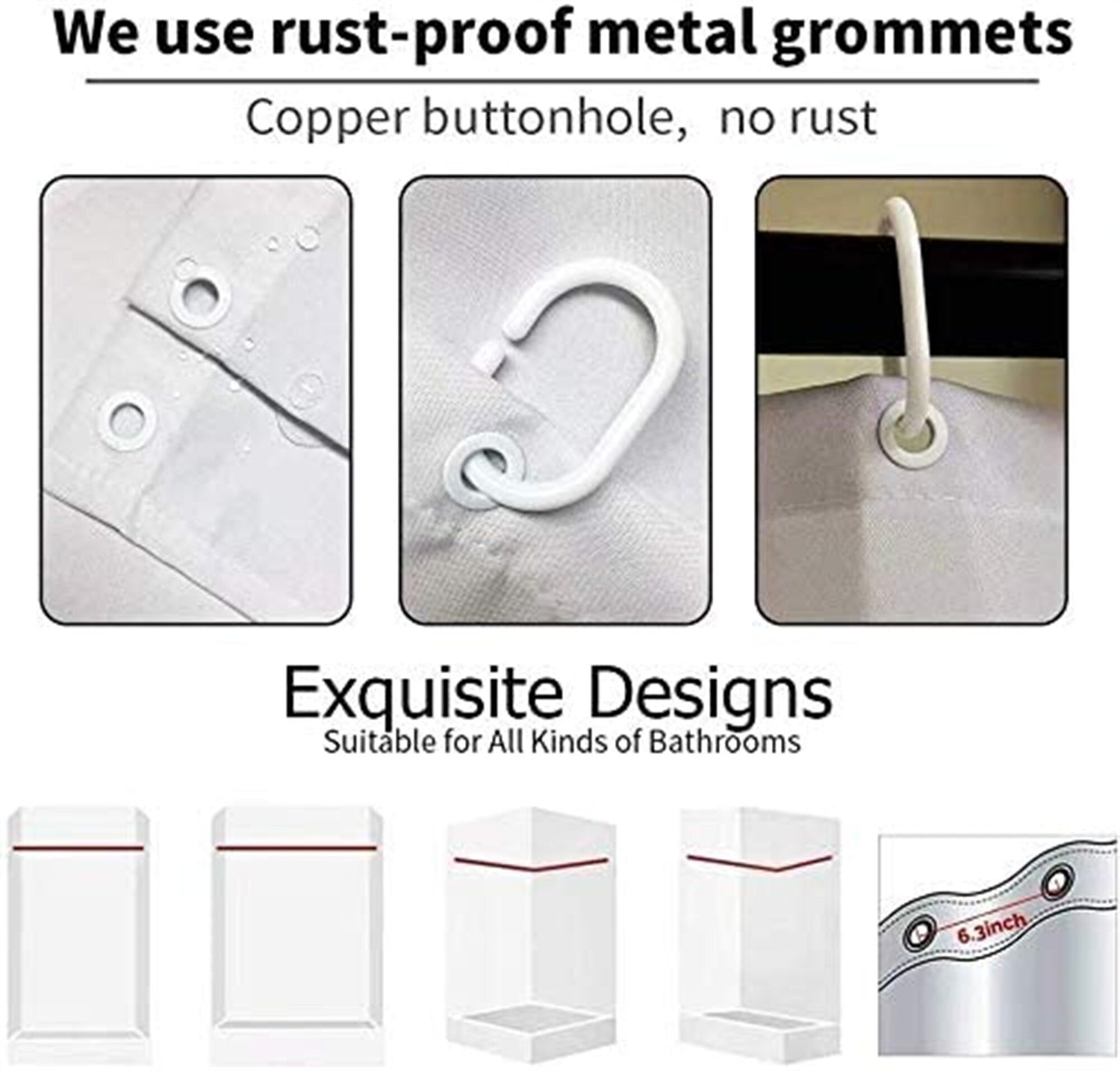 12 high-quality hooks, 12 rust-resistant copper grommets along with the reinforced top header, no liner needed.