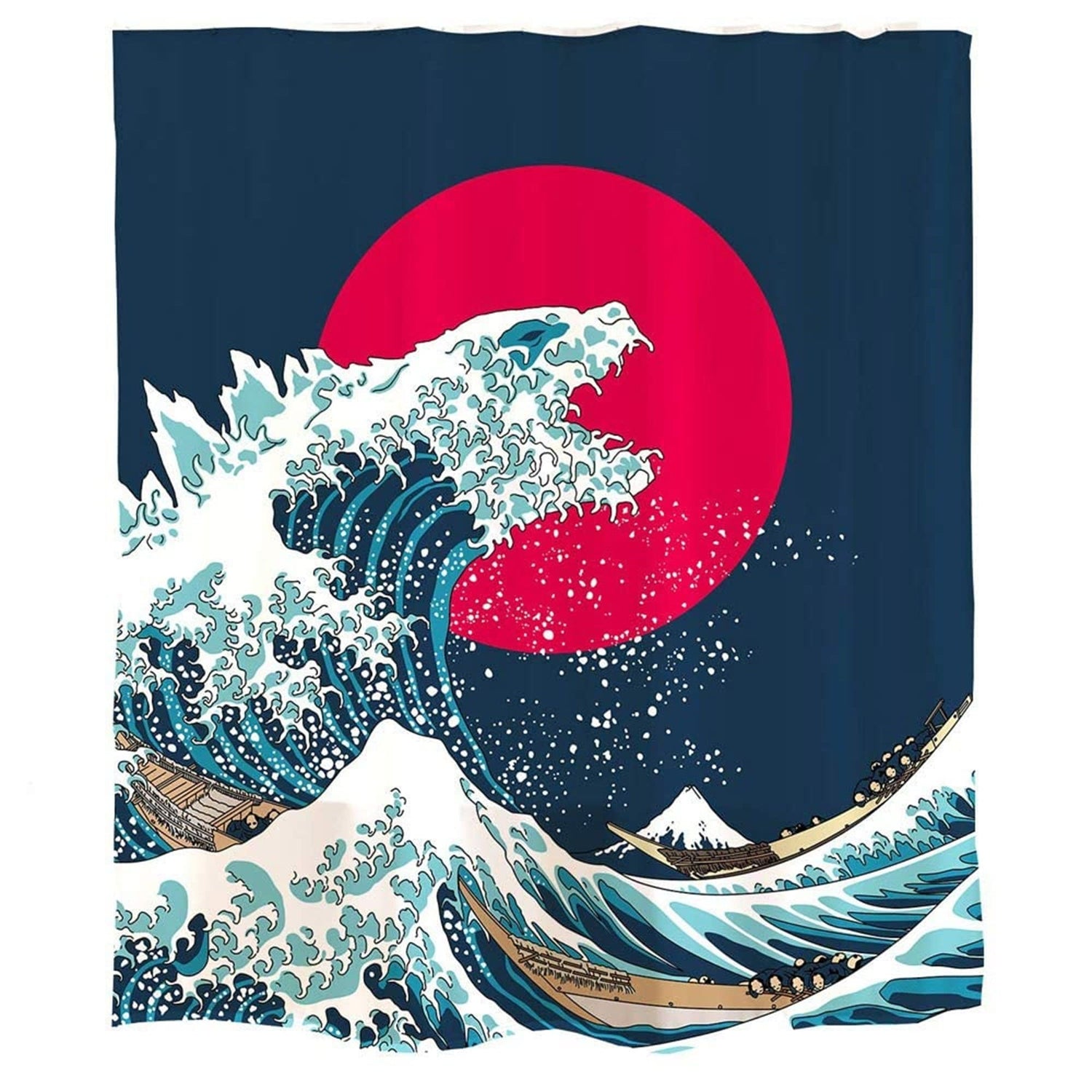 Ofat Home Red Blue Godzilla and The Great Wave Shower Curtain Sets with Hooks Bathroom Decor,No Liner Needed Waterproof Washable, 72x84 inch