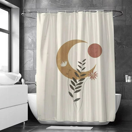 Feblilac Sun Moon Floral Shower Curtain with Hooks, Geometric Figure Bathroom Curtains with Ring, Unique Bathroom décor, Boho Shower Curtain, Customized Bathroom Curtains, Extra Long Shower Curtain