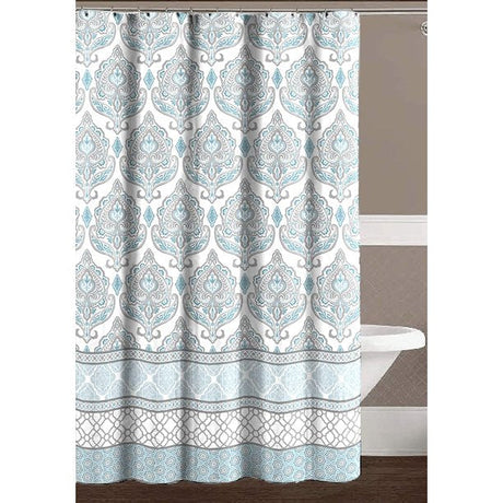 Feblilac Blue and Grey Flower Pattern Geometric Shower Curtain with Hooks, Geometric Figure Bathroom Curtains with Ring, Unique Bathroom décor, Boho Shower Curtain, Customized Bathroom Curtains, Extra Long Shower Curtain