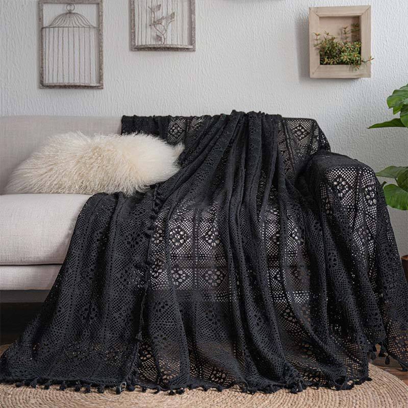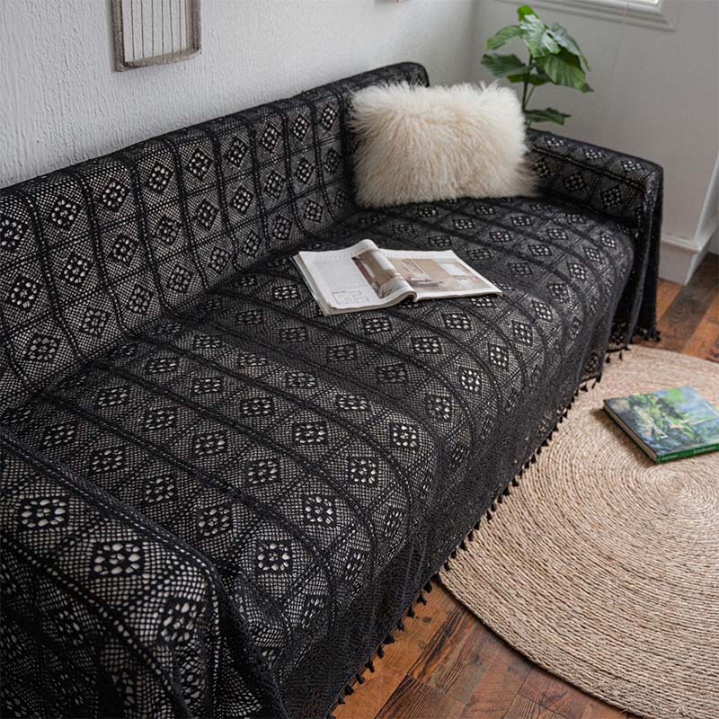Black Hollow-Out Tassel Sofa Protector - Black / 51" x 71" ist auf Lager und wird versandt, sobald es wieder verfügbar ist