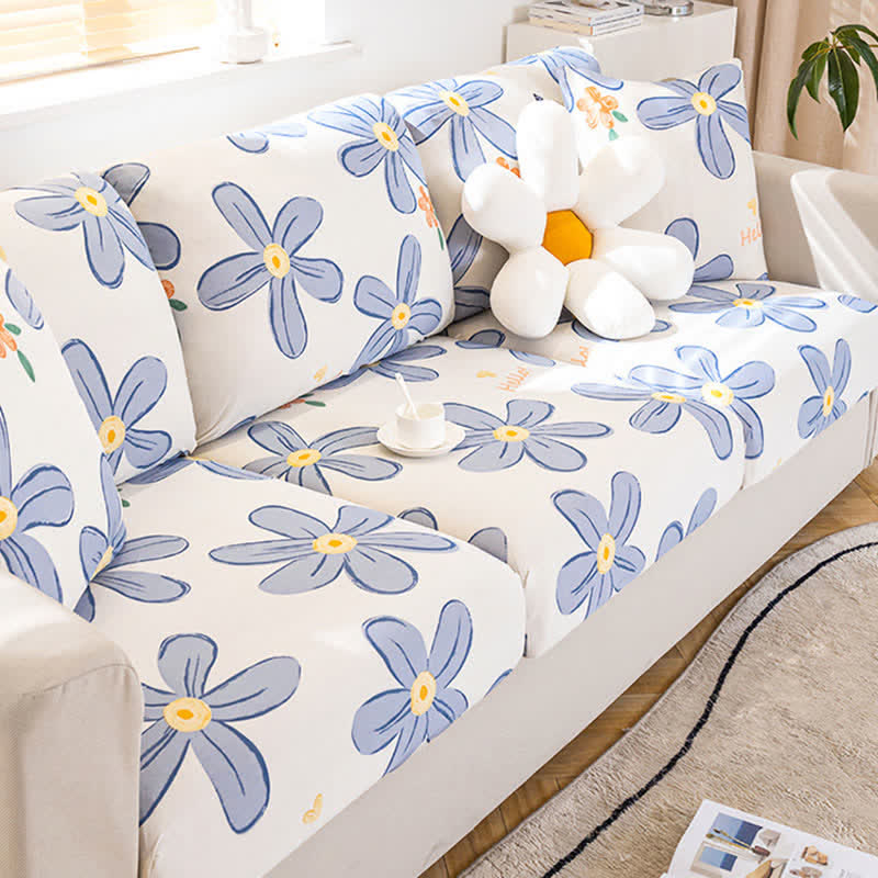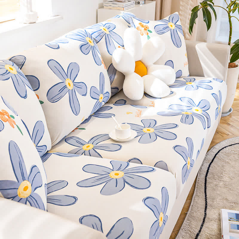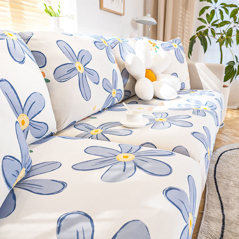 Blue Flower Elastic Sectional Sofa Slipcover - White / Normal Size S ist auf Lager und wird versandt, sobald es wieder verfügbar ist
