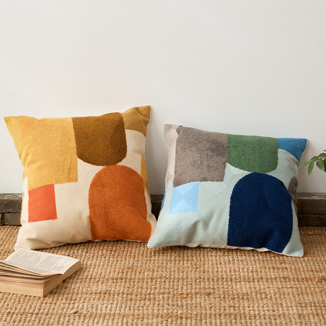 The Bancroft pillow cover is a bold and modern. Woven in quality cotton with embroidered colors enhance the strong design of this pillow. These bold abstract pillow covers will definitely bring your pillow collection to life.