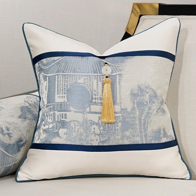 Embrace the beauty of the color blue with these modern and sophisticated pillow covers. The shades of blue add a sophisticated elegance to this collection. Some of the pillow covers have artistic embellishments that gives the design texture and depth. Group them together to create a look of modern beauty to any space.