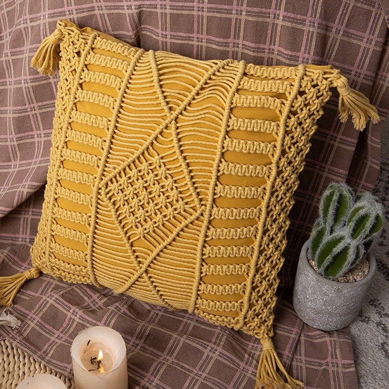 Bondi Macrame Pillows - Yellow / 18" x 18" ist auf Lager und wird versandt, sobald es wieder verfügbar ist