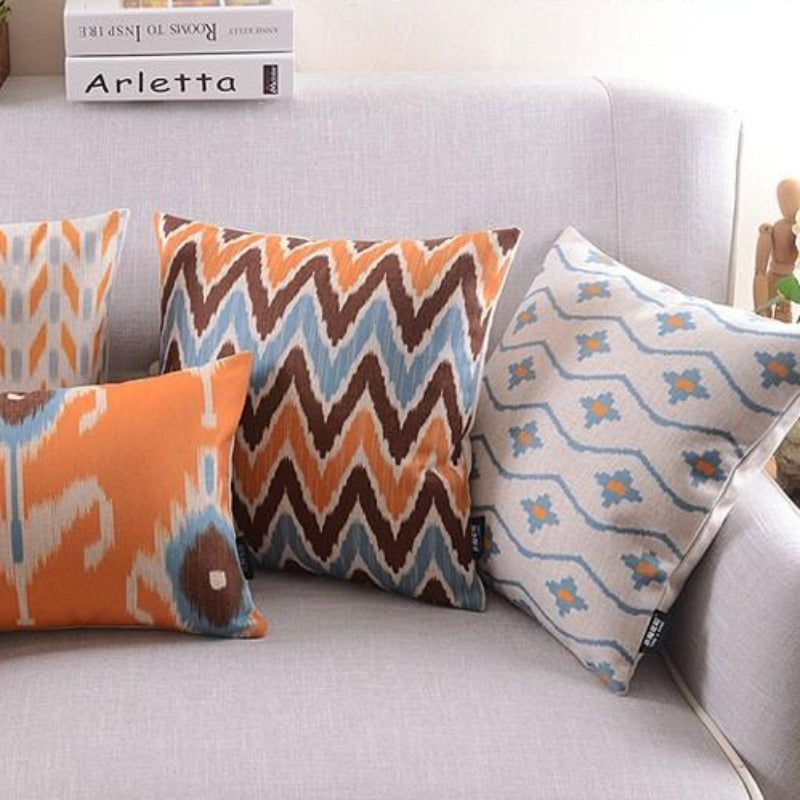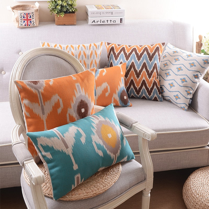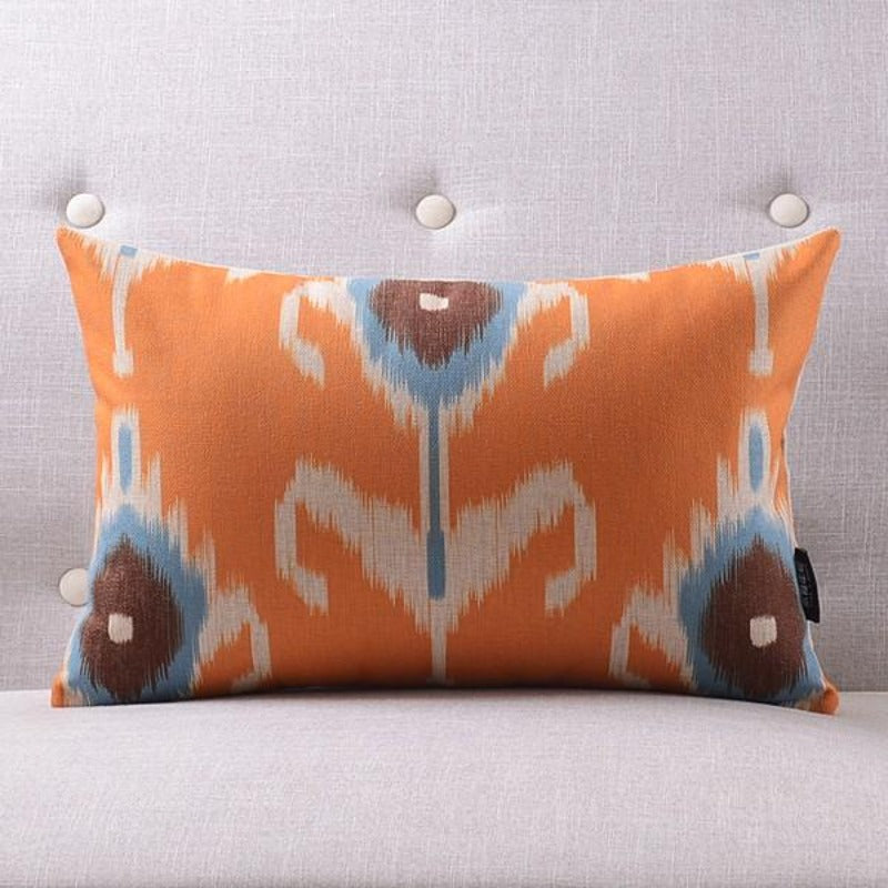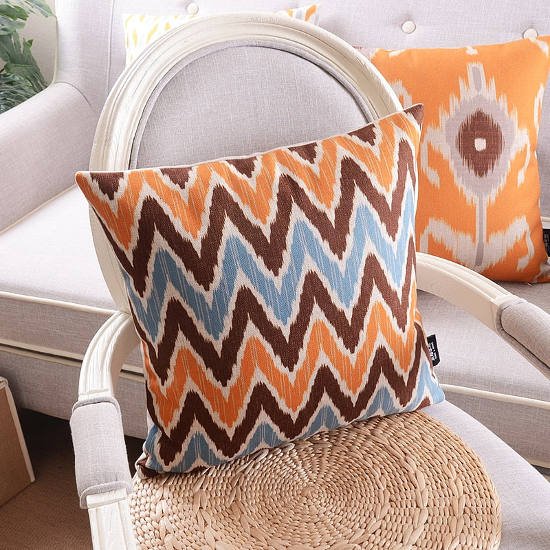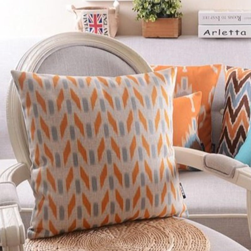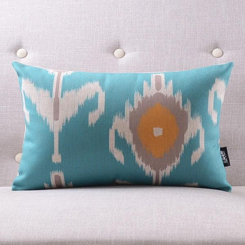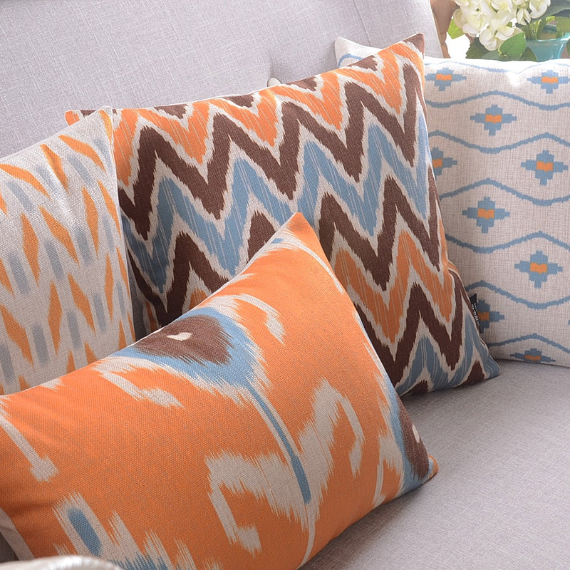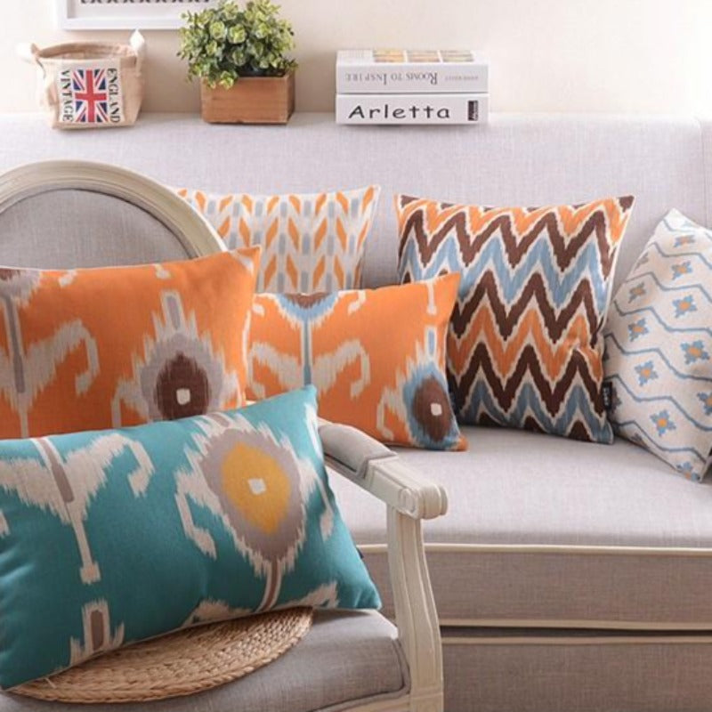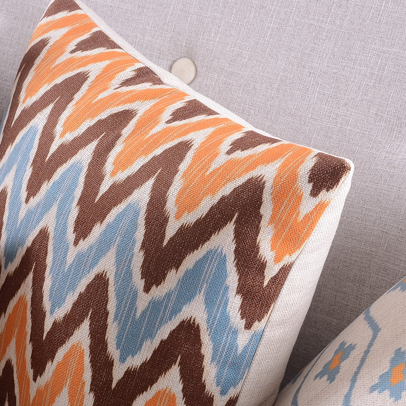The Clementine + Teal Ikat Pillow Cover Collection features: