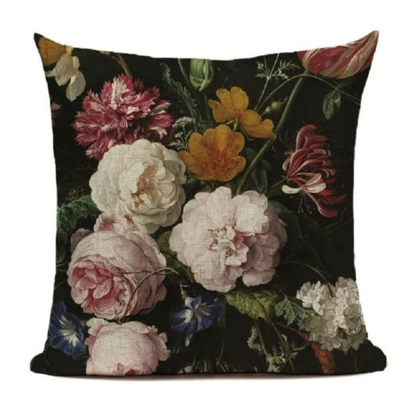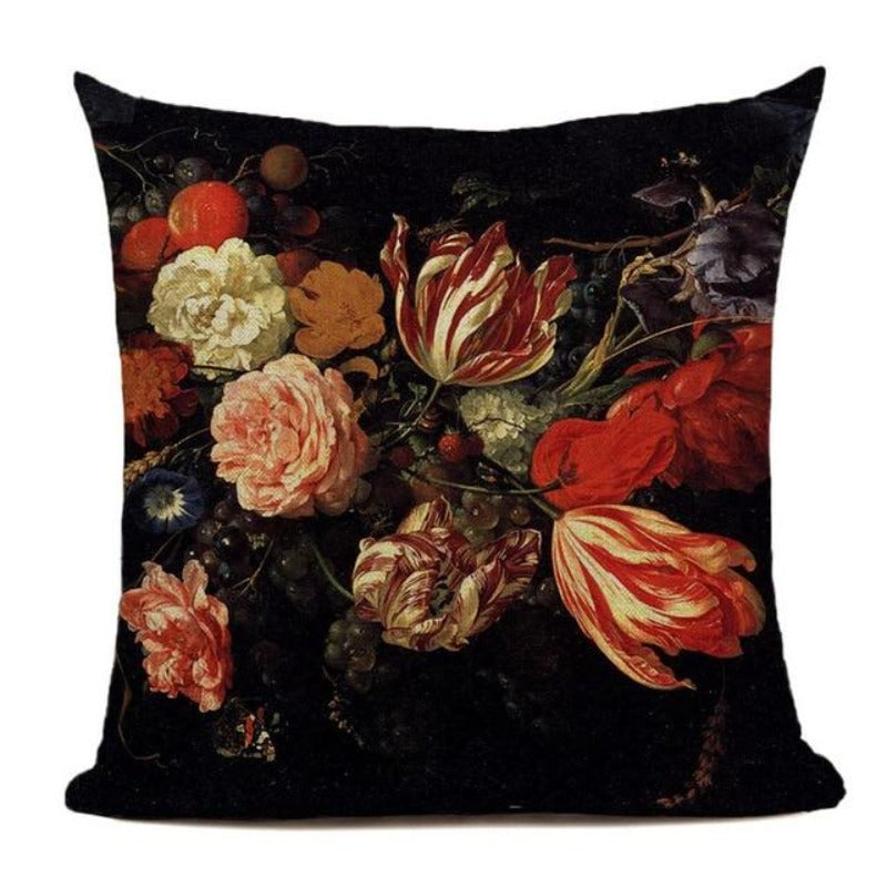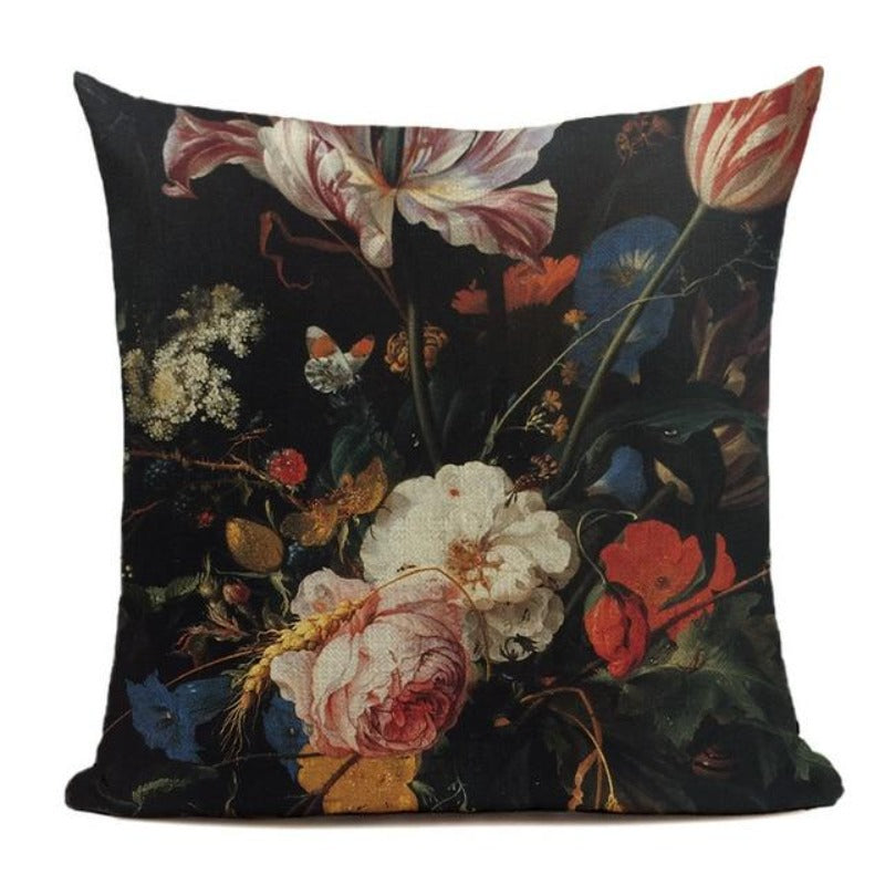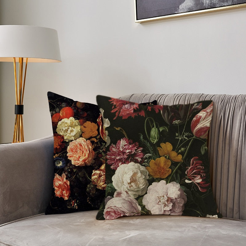 Like springtime breaking through the winter darkness or the most tempestuous love affair, our jewel-like Dark Romance pillow covers blossom with drama and intrigue. Inspired by the still life paintings of the Dutch Golden Age, beautifully detailed florals and dreamy botanicals are printed in deep, rich hues ranging from cream to claret on supple cotton linen that gets softer with use. Pair with our solid velvet pillow covers in dark, saturated hues for comfortable, touchable dimension that will have your bedroom or sofa blooming in mysterious luxury.