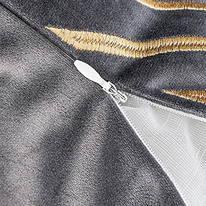 Combining the golden glamor of Hollywood Regency with Midcentury Modern geometry, these covers will bring big drama into your space. Available in stunning gem tones, The Gilded Luxury pillow covers are made of touchable cotton velvet with dynamic angles of shimmering embroidery. Like jewellery for your luxurious lounging spaces, these pillows will be the crown jewels of your settee.