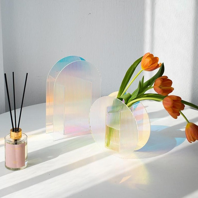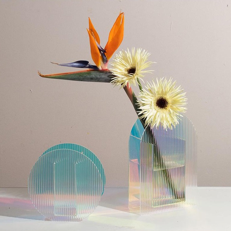 Prism Acrylic Vases are available in colorful circle and arch shapes, giving your space an eye-catching statement piece. These stunning vases are made of durable acrylic, making them the perfect choice for adding a modern touch to any home or office.