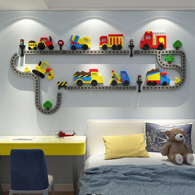Feature: Made of high-quality acrylic material, safe and environmentally friendly. Bright color, good touch texture, strong 3D stereo effect. Dozer car kids wall stickers are not only a great educational tool but also a fun way to decorate your room.
