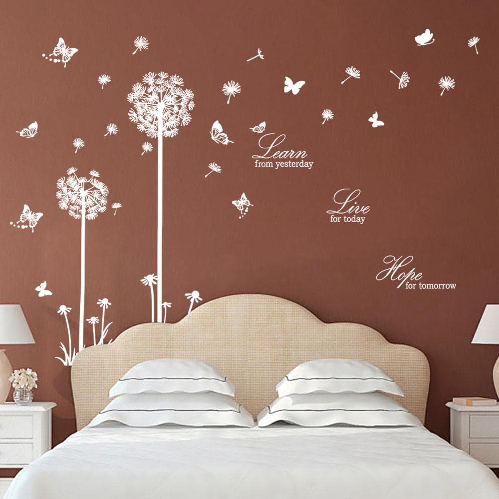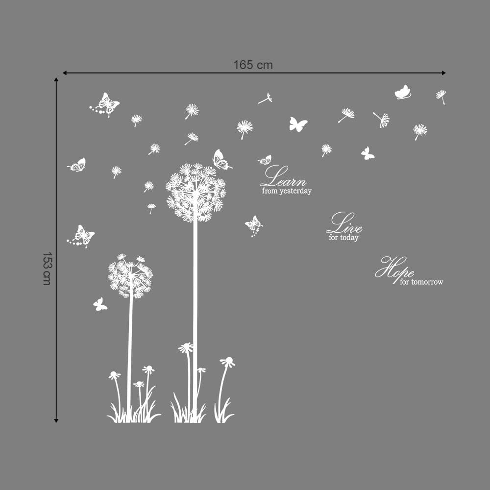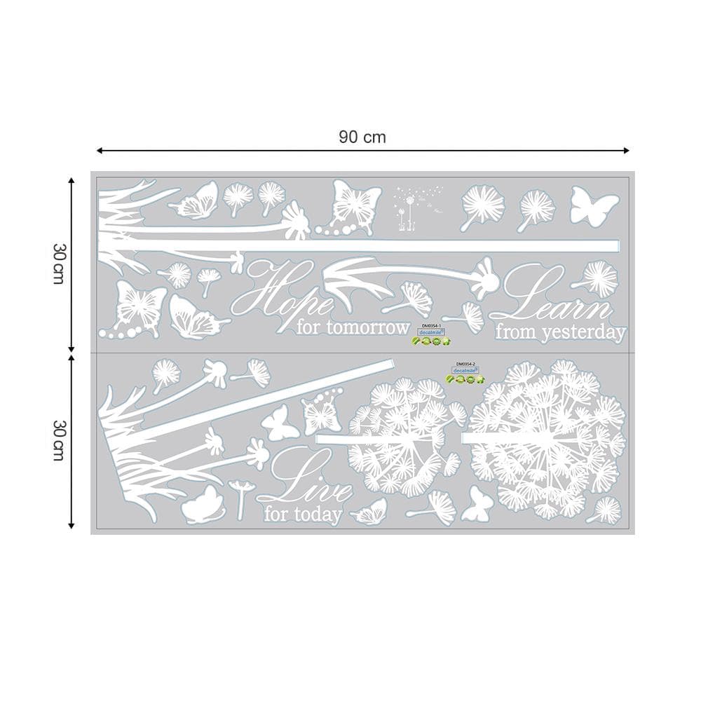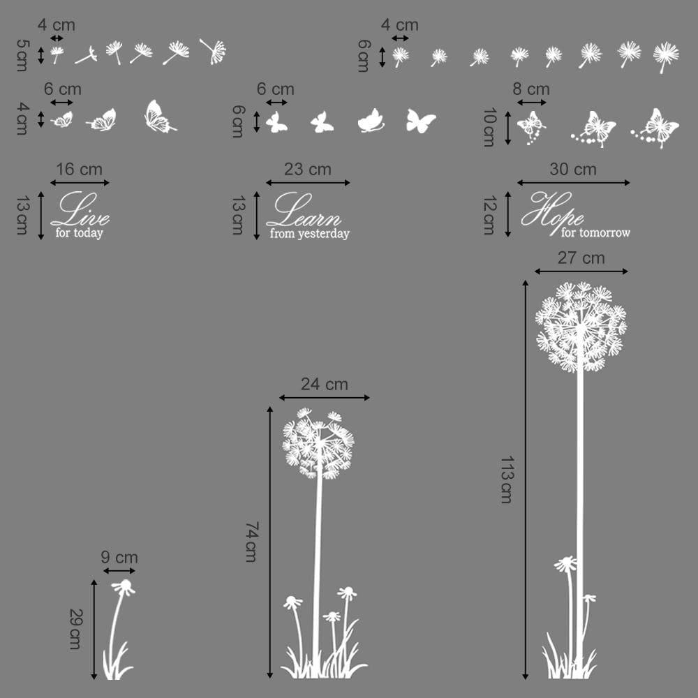 1. This decal included flying dandelions with butterflies, and quotes "Learn from yesterday, Live for today, Hope for tomorrow". All elements are beautifully designed with a stylish warm cartoon effect