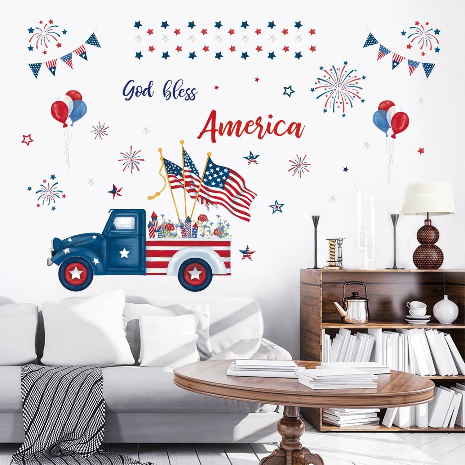 This decalmile patriotic wall decal is designed for those who want to celebrate Independence Day and Memorial Day. Classic blue and red stars and stripes can go anywhere you want such as a party, door, office, and living room.