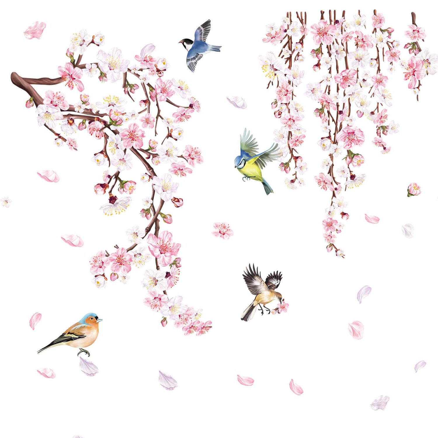 This decal is a great choice for room decoration, composed of blooming cherry blossoms and many birds, it brings a romantic touch to your room.