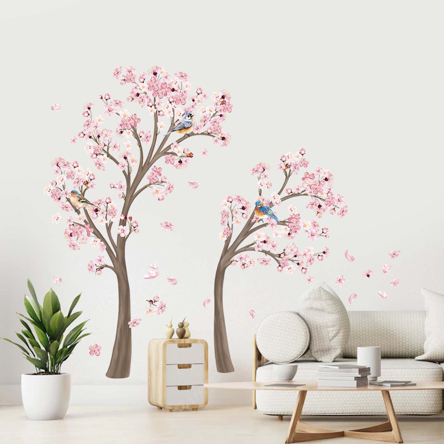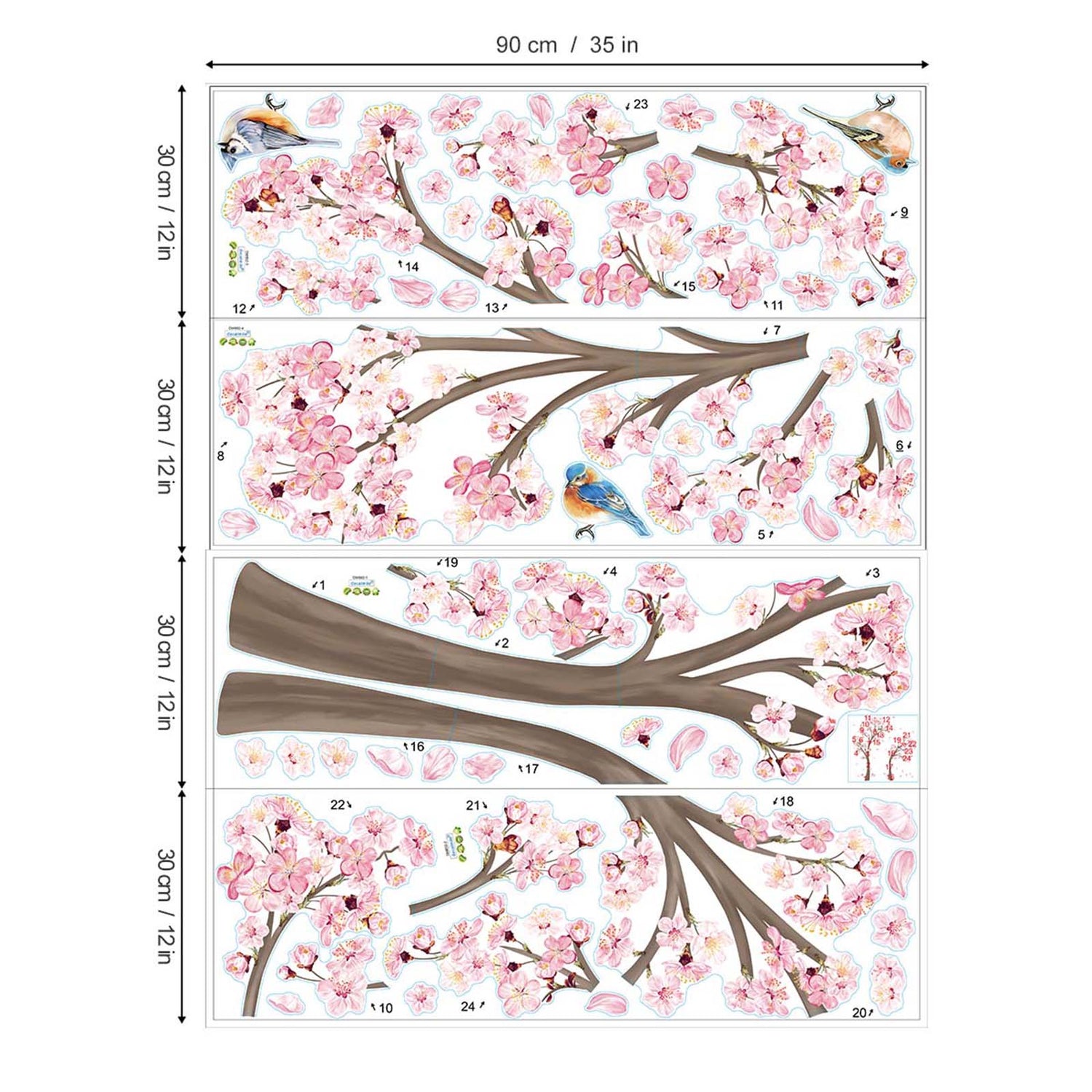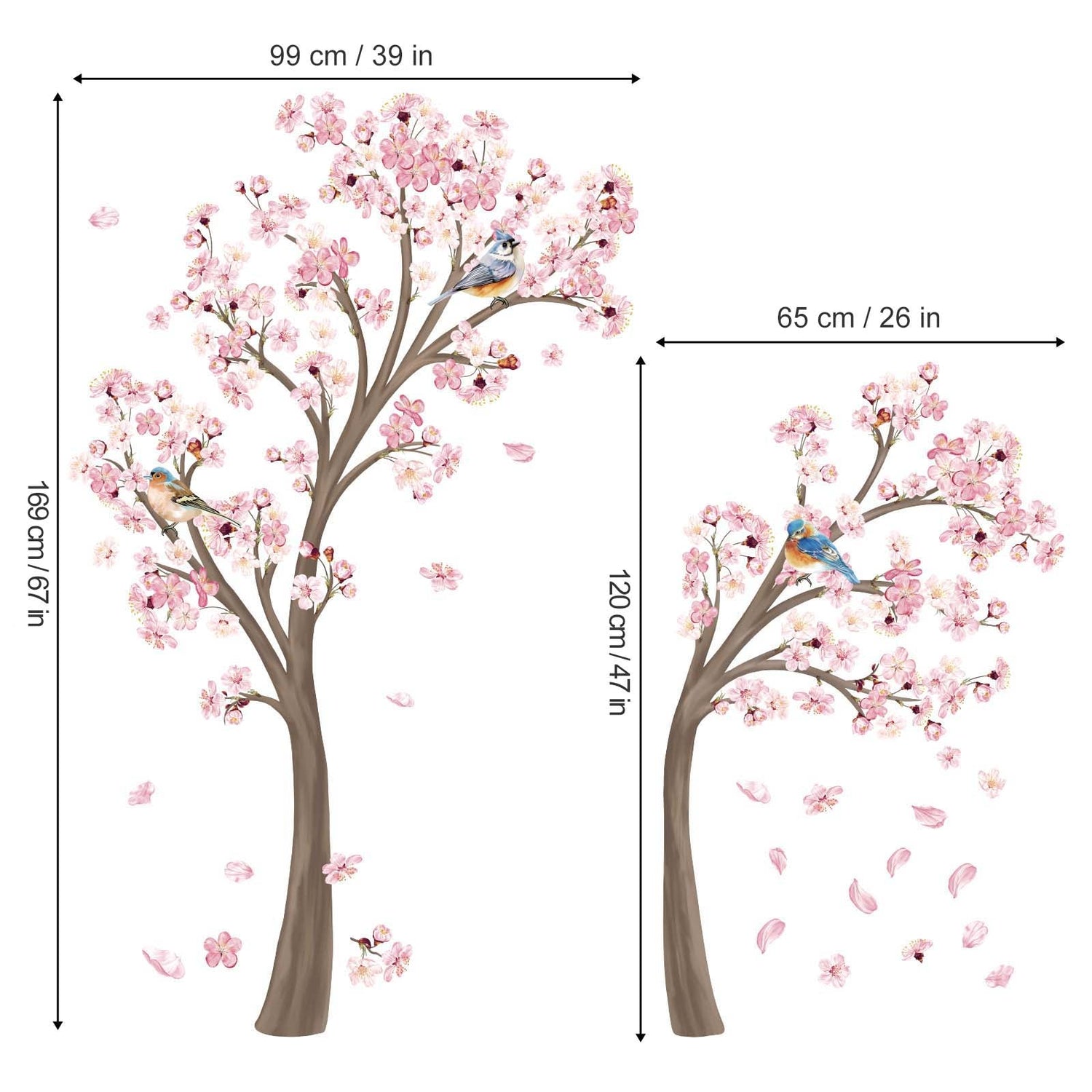 This wall sticker includes pink blossom flowers tree, cherry flower tree branches and flying birds, are beautifully designed, decorate your room with stylish and warm effects.