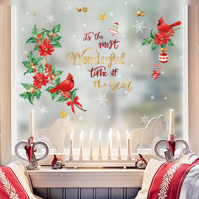 4. decalmile cardinal birds Christmas window wall decals quotes are perfect to decorate bedroom, living room, dormitory, sofa background