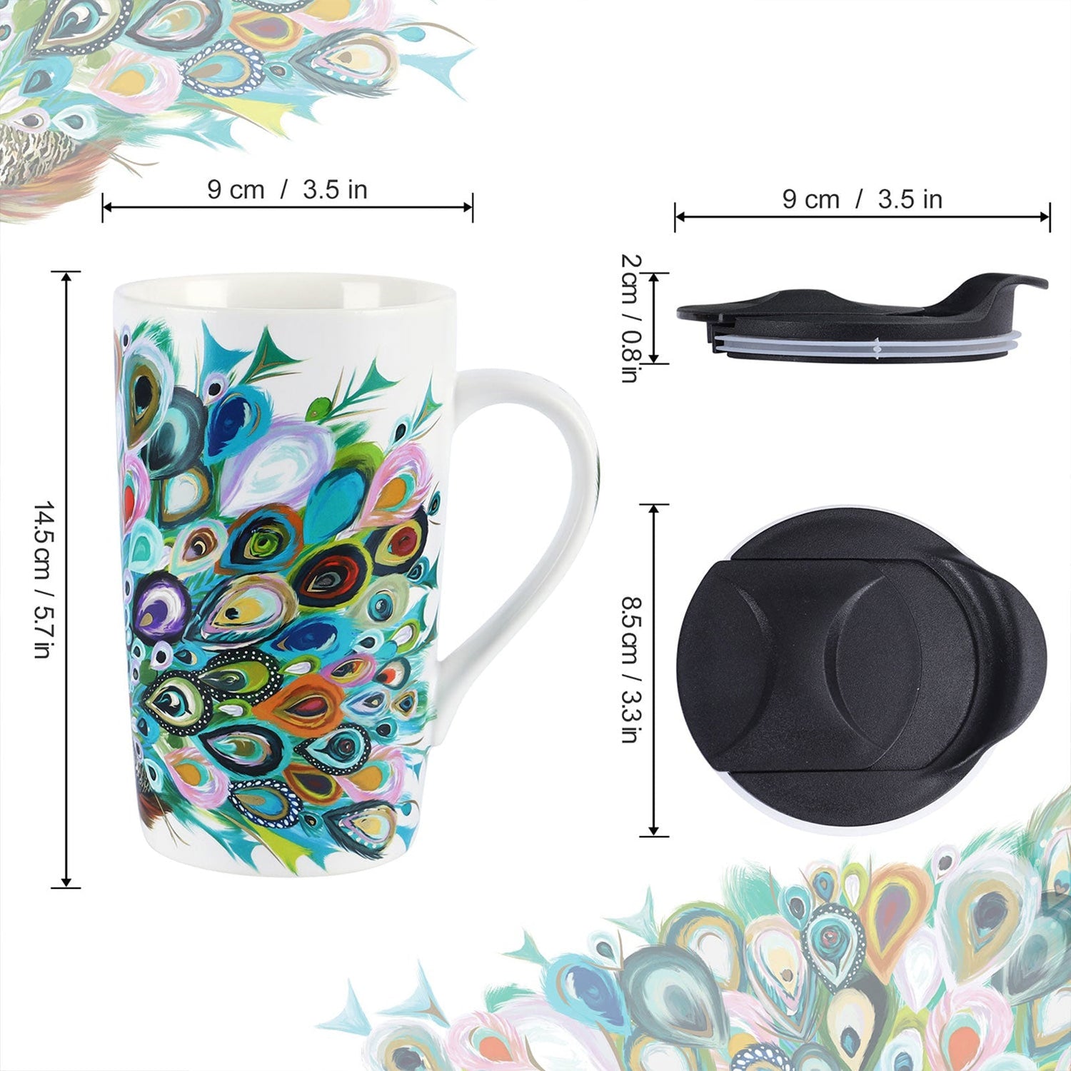 1. Personalized Design: The patterns of NymphFable coffee mugs are designed exclusively. A colorful Peacock opens its beautiful tail, looks lifelike, the whole mug is filled with beauty, elegant and personalized design.