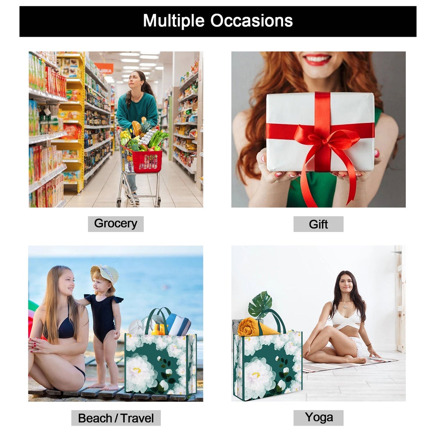 Made of non-woven, these grocery bags are well stitched, wear-resistant, strong, and durable enough to hold more than 50 pounds, long sturdy handles allow for hand holding or carry on the shoulder. Ideal for shopping, groceries, travel, storage.