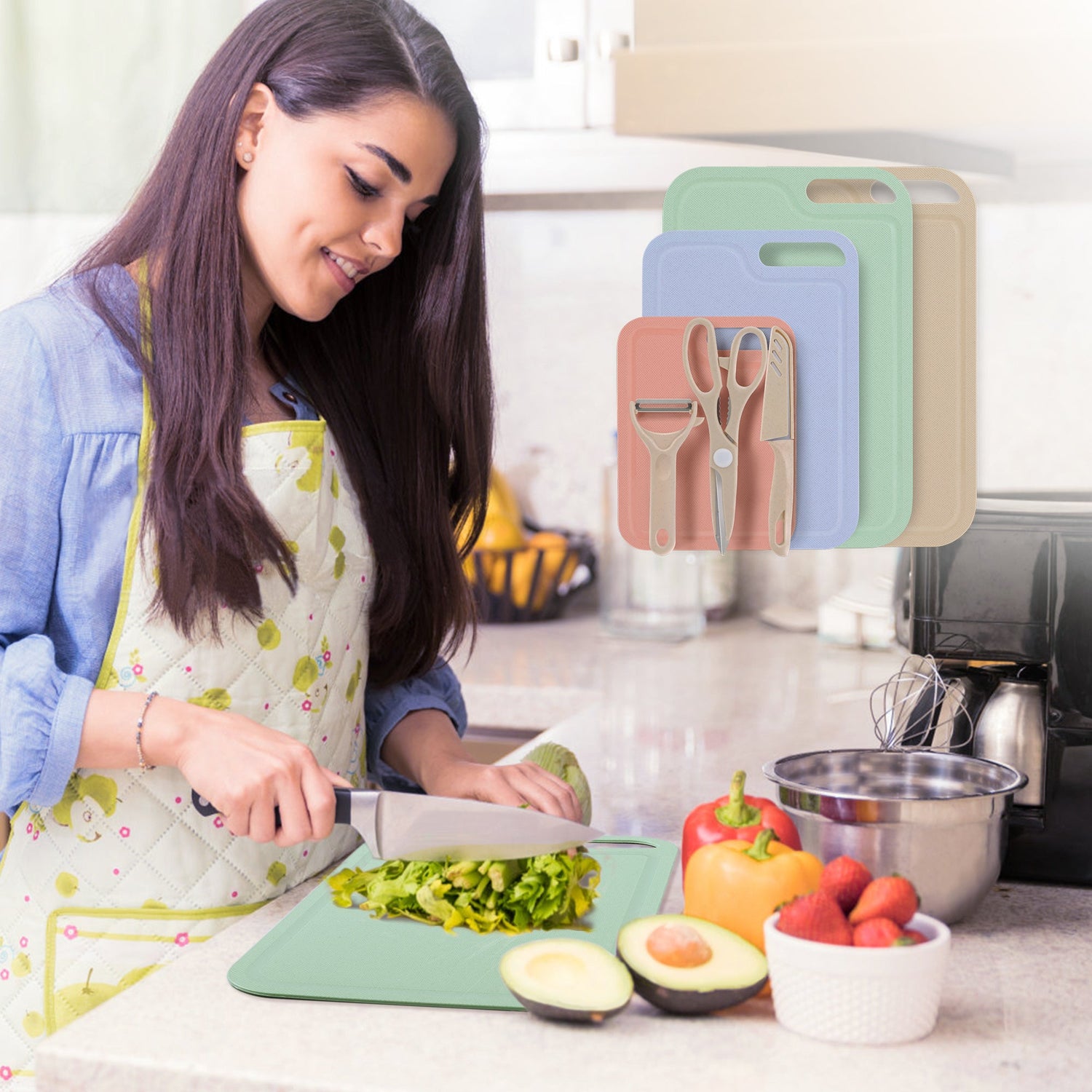 Different Size & Color: The set?includes 4 size chopping boards: 2 large sizes (13.6*8.9") suitable for meat or steak; a medium size (11.3*7.7") suitable for vegetables; a small size (8.3*6.3") suitable for fruit or outdoor use. You can also decide the usage of them from different colors