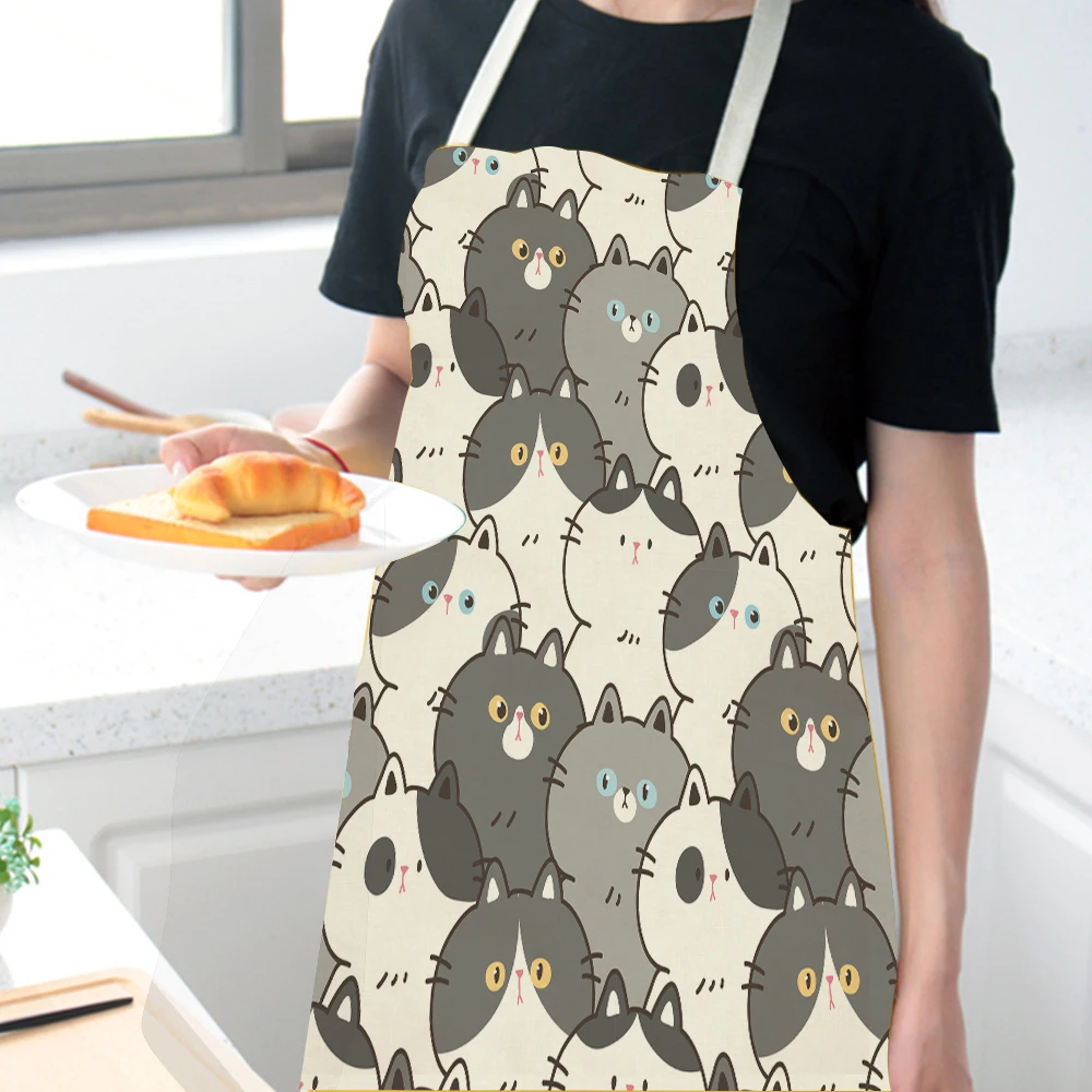Cute Cat Print Kitchen Apron is definitely the most adorable apron for you and your partner! Very well water absorbed, make it easy and comfortable when you cook!