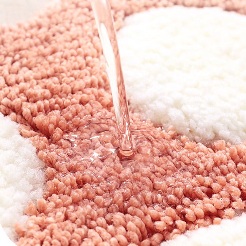 The bath mat is made of heavy-density yarn. Thick and fluffy contact surface offers exceptional comfortable feels to help soothe tired feet, and is super absorbent that helps save your floors from dripping water while you were stepping out of the bath, shower, or getting ready by the sink.