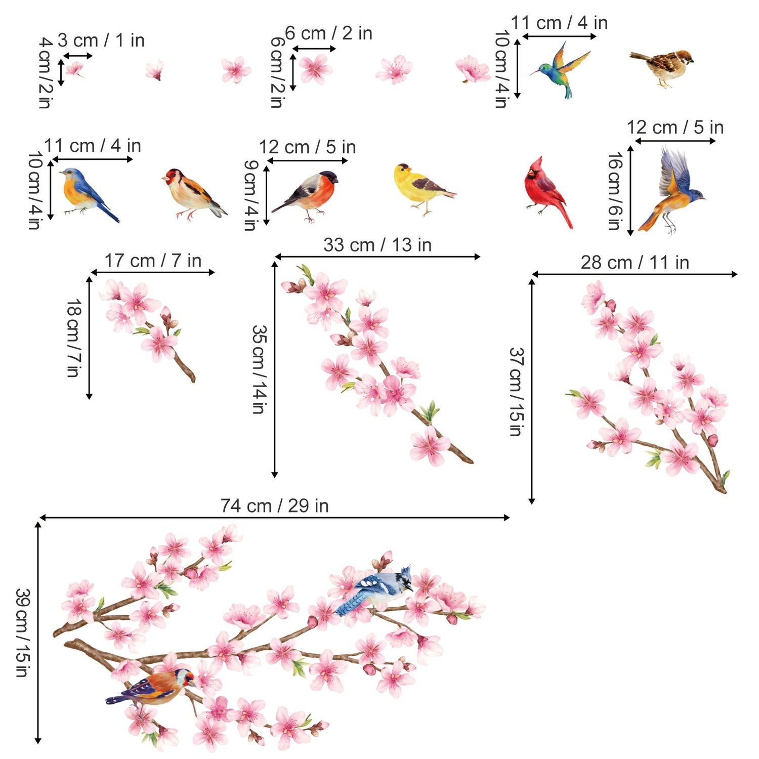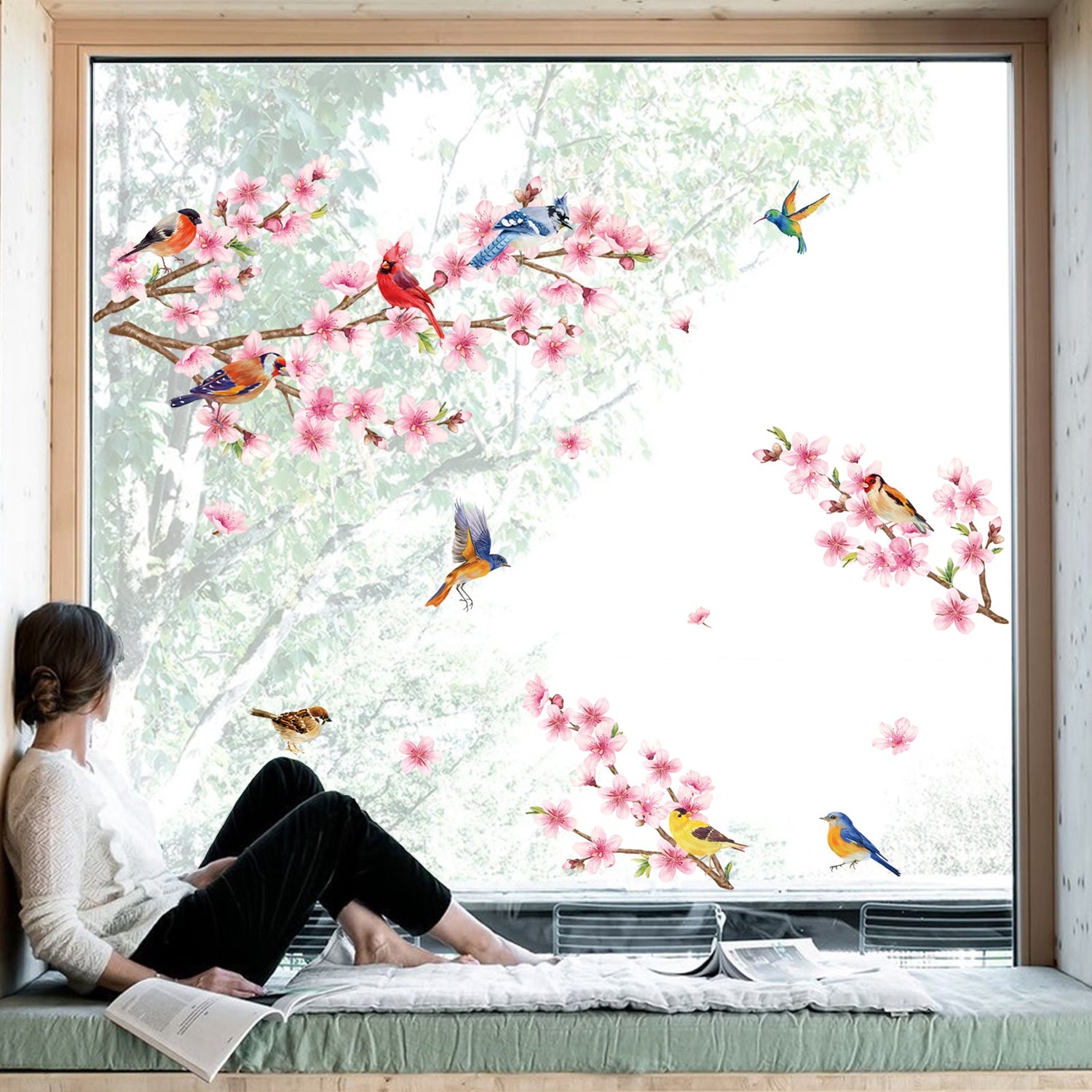 This decal included a great set of flower branches with birds, bring you the breath of spring.