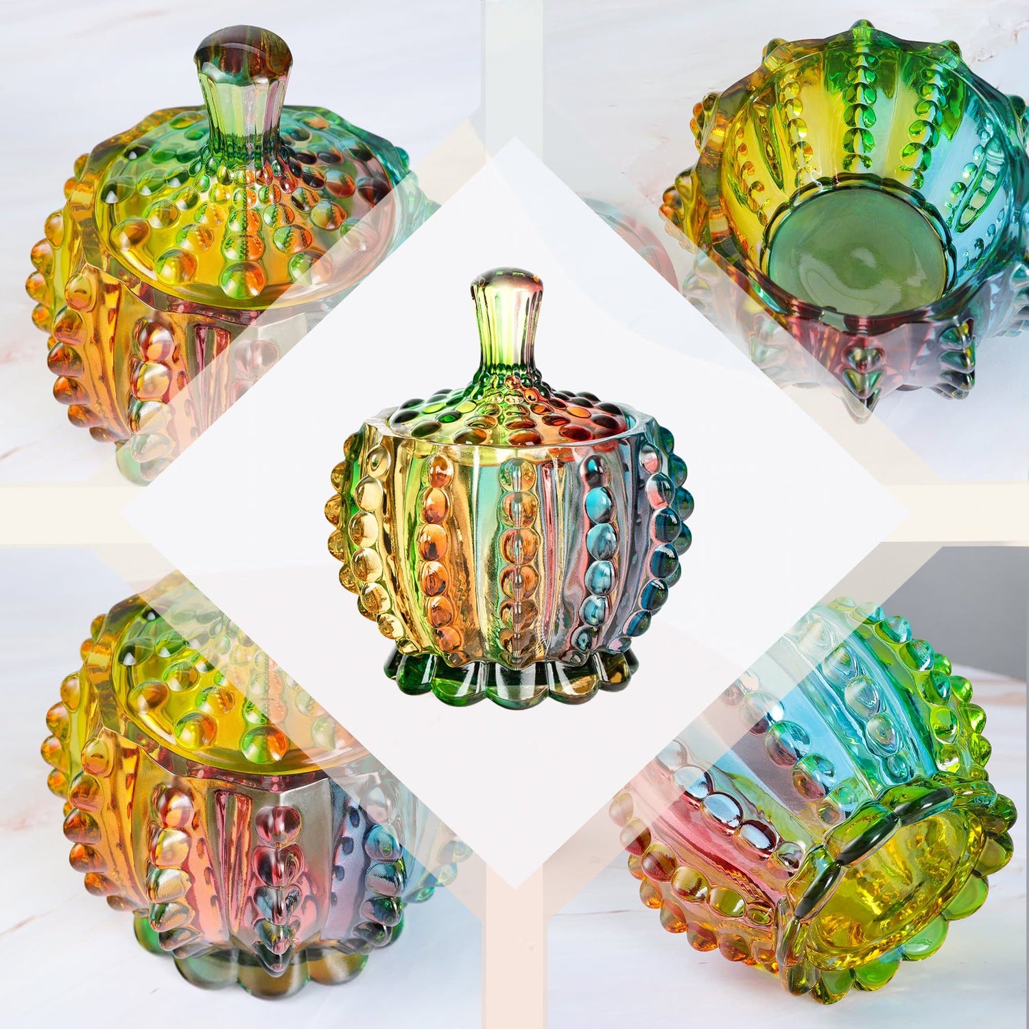 Iridescent Candy Dish with Lid - Colorful-2 ist auf Lager und wird versandt, sobald es wieder verfügbar ist
