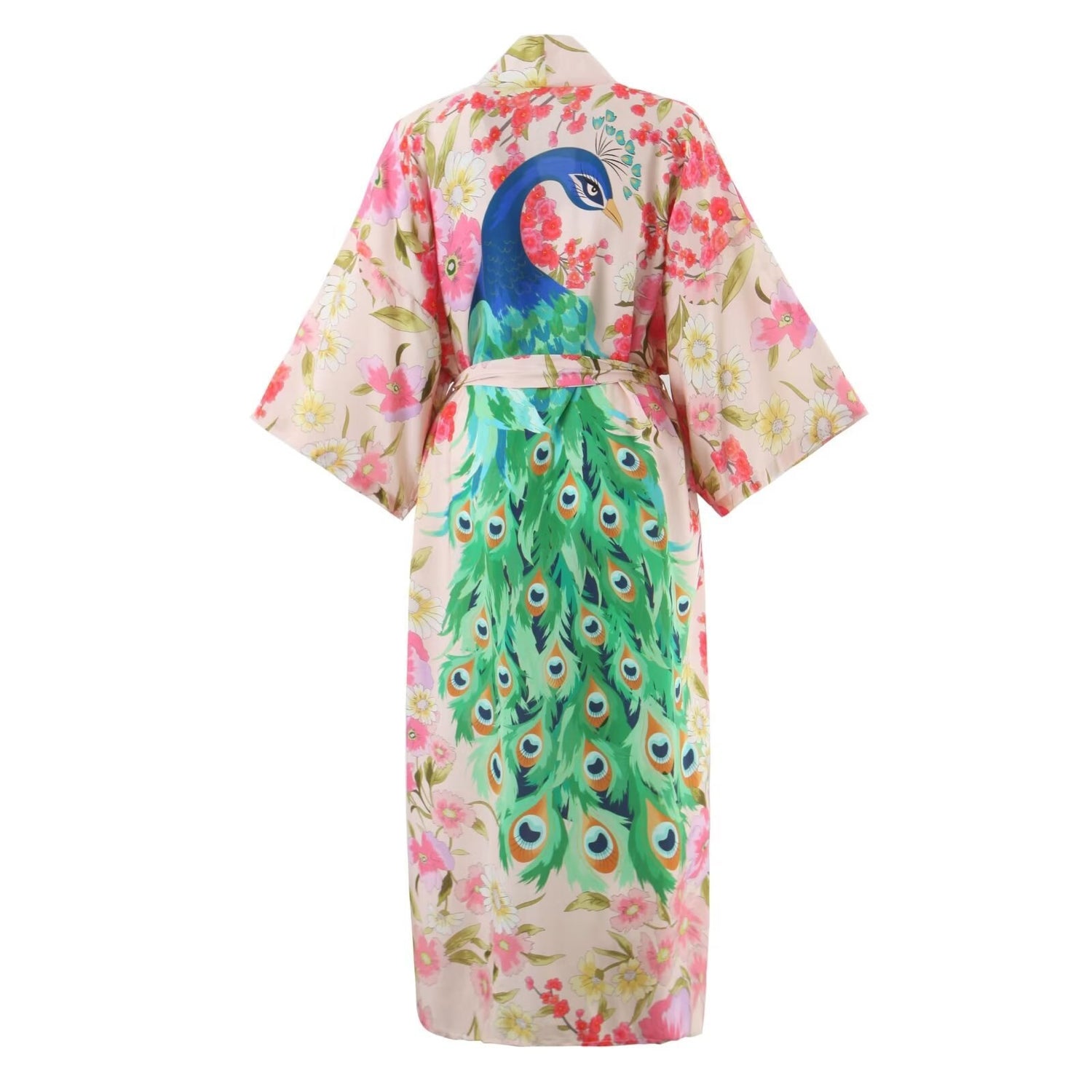 Adding instant detail to your outfit, this peacock flowers pattern print cotton kimono Jacket with belt is the perfect throw-on piece for all occasions. For a dreamy day time look, wear this kimono with your go-to skinny jeans, strappy heels and a fitted bodysuit. Seen in beautiful colours and on-trend prints, this kimono is perfect for summer. Layer this one over your swimwear, grab your sunnies and head to the beach with confidence.