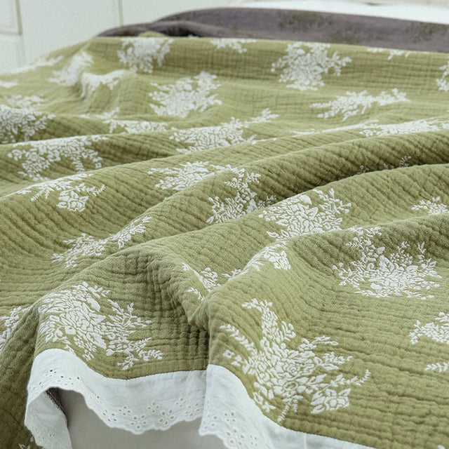 Cotton Ruffled Throw Bed Cover 100% cotton Muslin Sofa Throw Decor, Double-sided Bed Throw Blanket, 200x230cm/79x90",Housewarming gift.
