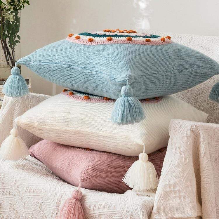 About: Bring the essence of global-inspired designs into your home with our Handmade crochet Sunflower throw pillows. This piece embodies impeccable artistry making it the ideal accent for an empty corner in need of a bit of modern grace. Featuring fun flirty handmade tassels with meticulous embroidery this piece captivates a sense of sophistication in the destined to capture the eye of any beholder. Pillow Cover Only.