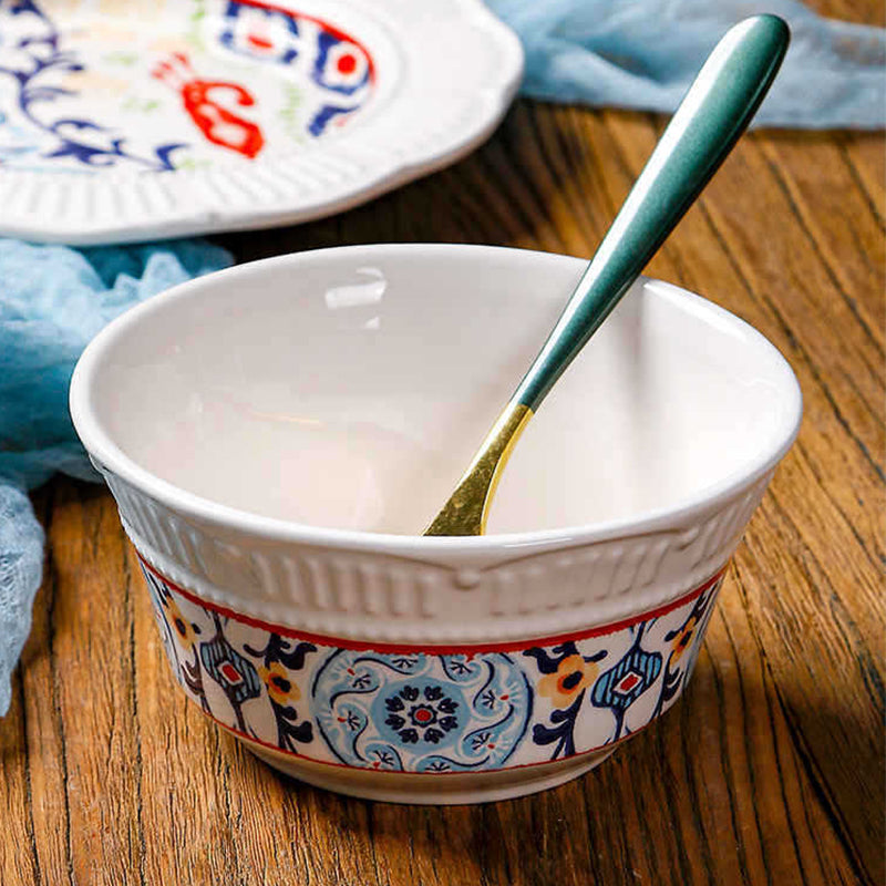 Using the underglaze hand-painted applique process, the glaze is smooth and does not fade, easy to clean, and safe to eat.