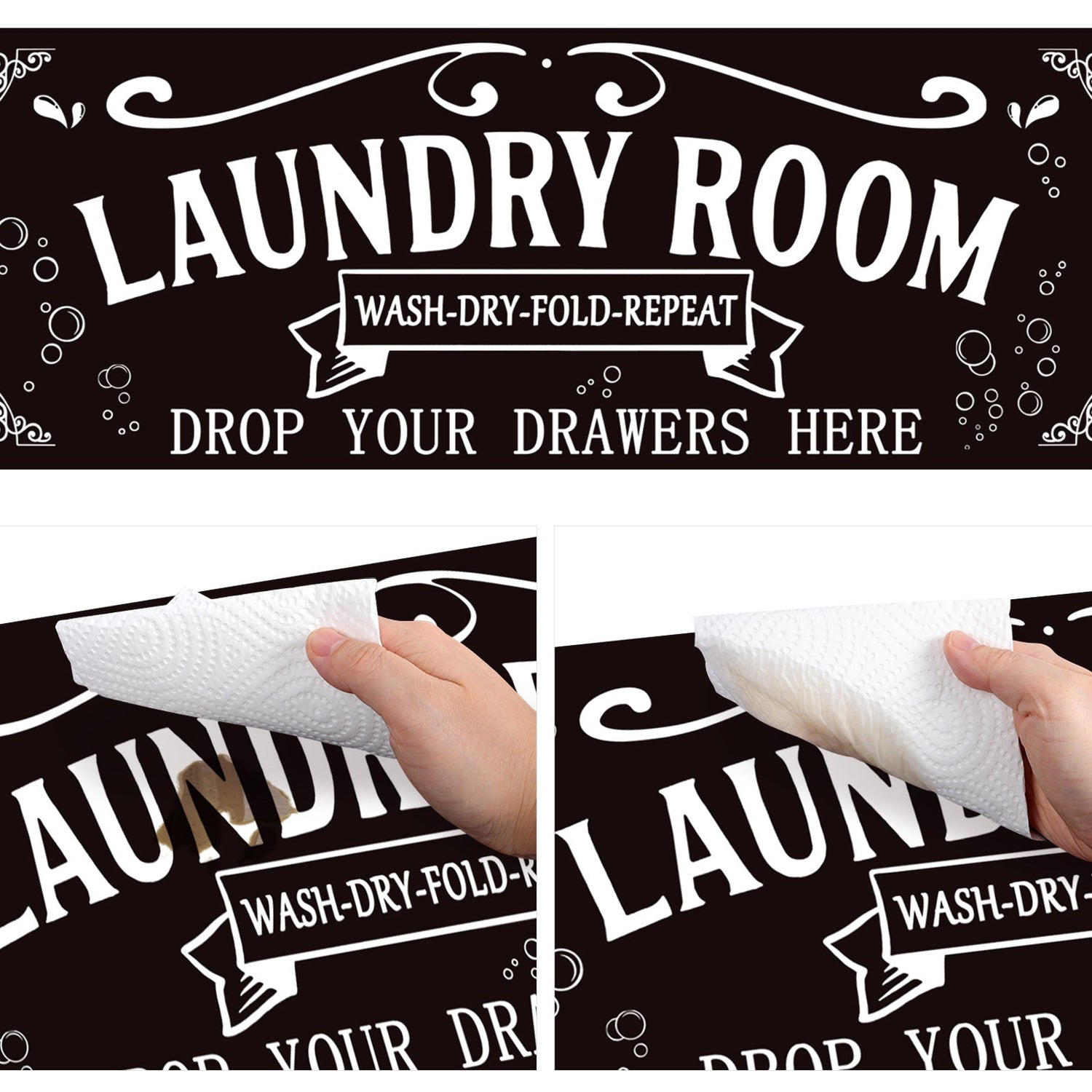 This laundry room rug measuers (47"x17.3"), which is long enough to cover the area in front of your washer and dryer. It's also a great decor for laundry room due to its minimalist style.